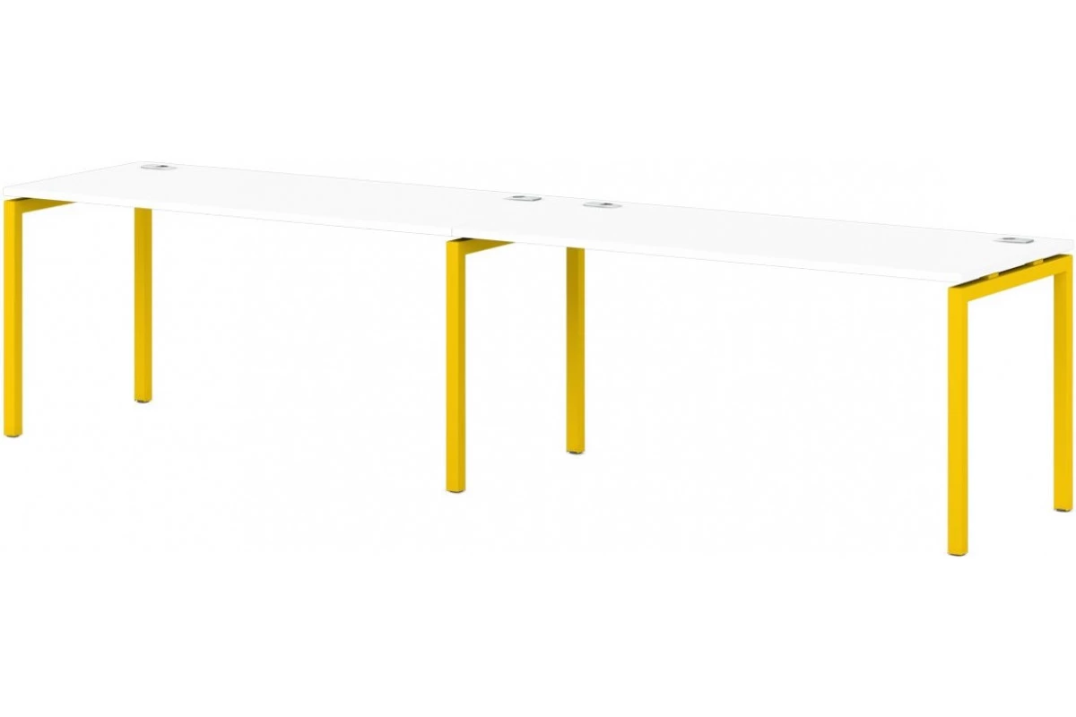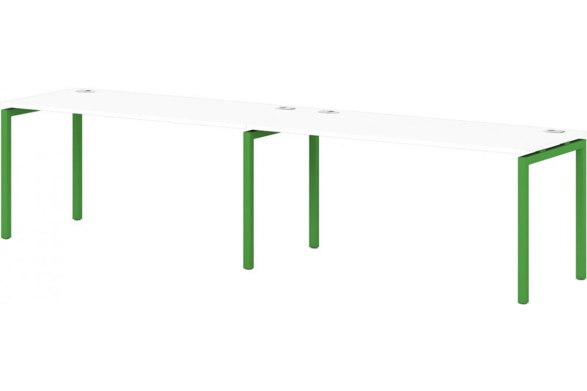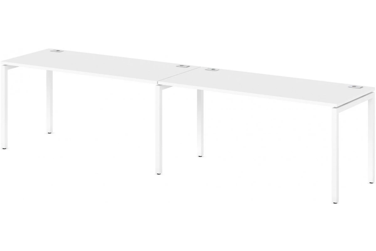 Бенч-система на 2 рабочих места (линейный кластер) с 2-мя заглушками кабель-канала. Сечение трубы 40х40 мм. Возможность установки экранов.,Линейный кластер на 2 рабочих места, артикул: S-137. Размер: 3200x700x750. ЛДСП: 25 мм. Металлокаркас: 40х40. Кромка: ABS 2 мм.,Линейный кластер на два рабочих места на Металлокаркасе. Столешницы изготовлены из ЛДСП 25 мм и оклеены противоударной кромкой ABS 2 мм. Металлокаркас представляют собой разборную, легкособираемую конструкцию, состоящую из опор и соединителей, стянутых между собой крепежными узлами. Опоры оборудованы регулировочными ножками, с возможностью регулировки по высоте. Металлокаркасы изготавливаются сечением 40х40 мм и окрашены порошковой краской в белый или серый цвет. В столешницах установлены по два кабель-канала и лоток сетчатый для проводов. Все соединительные элементы оснащены фурнитурой для многократной сборки и разборки изделия.,Декоры металлокаркасов Манго и Белый в наличии. Декоры металлокаркасов Апельсин, Голубика, Зеленый лайм, Земляника, Тирамису, Инжир и Малина доступны при заказе от 10 элементов или 10 рабочих мест. Также под заказ возможно исполнение металлокаркаса в цветах "антрацит" и "серый". Данная модель в классических декорах ЛДСП Дуб Верцаска светлый и Дуб Честерфилд на белых металлокаркасах в серии Sentida в наличии.