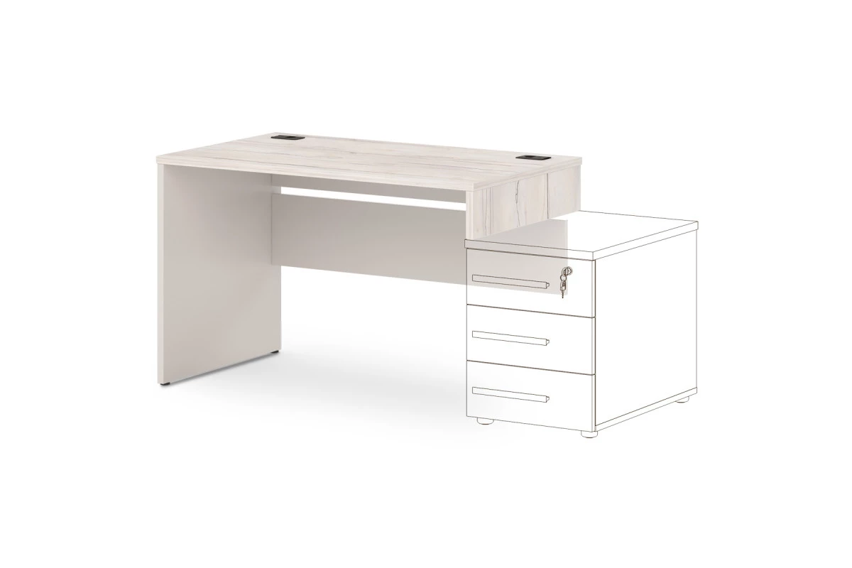 Офисный стол концевой прямой с 2 заглушками кабель-канала. Предназначен для создания бенч-систем. Стол может замыкать цепочку из столов с левой или правой стороны. На фото стол - левый. Декоры: столешница и промежуточный бок - Таксония, остальные детали - Бежевый песок.,Артикул: T-31л/пр. Размер: 1200х700х750. ЛДСП: 25 мм и 18 мм. Кромка: ABS 2 мм и 0,4 мм.,Столешница изготовлена из ЛДСП 25 мм и оклеена противоударной кромкой ABS 2 мм. Бока изготовлены из ЛДСП 25 мм и оклеены противоударной кромкой ABS 2 мм и кромкой ABS 0,4 мм. Соединители изготовлены из ЛДСП 18 мм и оклеены противоударной кромкой ABS 0,4 мм. В столешнице установлены два кабель-канала. Опоры стола снабжены компенсатором неровности пола. Все соединительные элементы оснащены фурнитурой для многократной сборки и разборки изделия. Используется фурнитура ведущих европейских производителей.