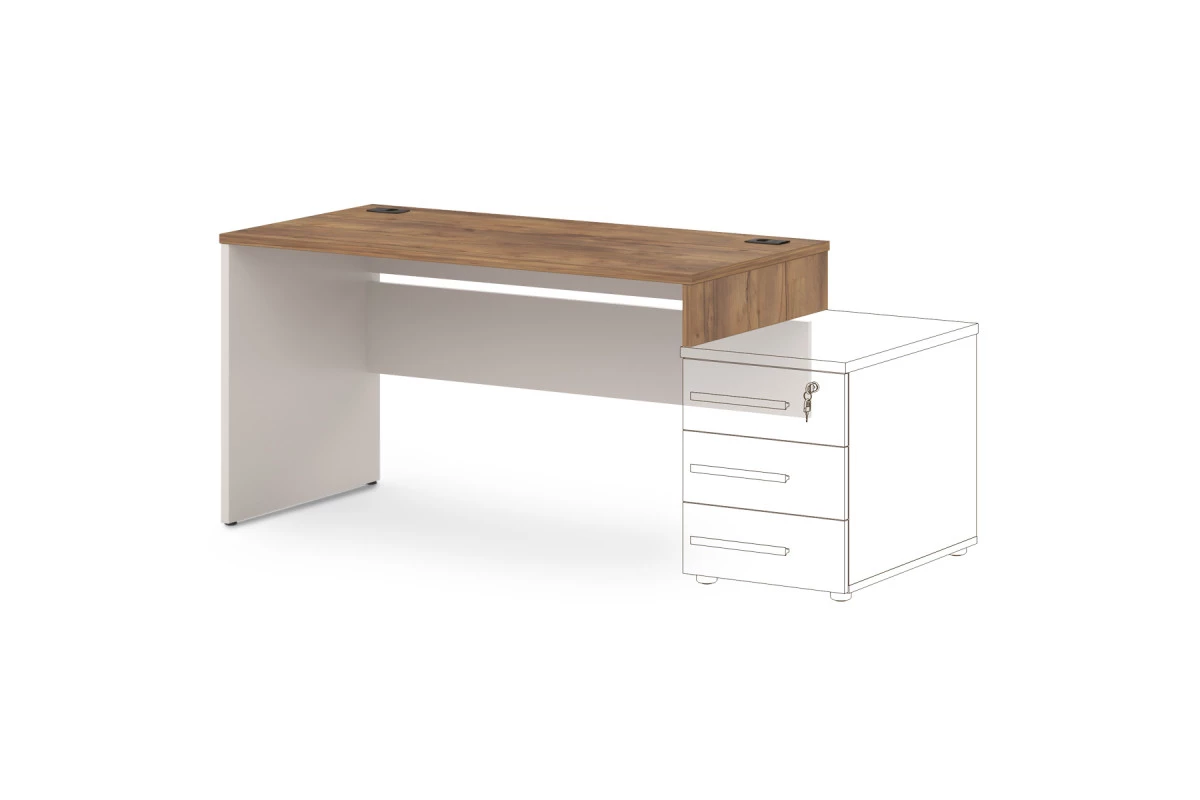 Офисный стол концевой прямой с 2 заглушками кабель-канала. Предназначен для создания бенч-систем. Стол может замыкать цепочку из столов с левой или правой стороны. На фото стол - левый. Декоры: столешница и промежуточный бок - Таксония, остальные детали - Бежевый песок.,Артикул: T-32л/пр. Размер: 1400х700х750. ЛДСП: 25 мм и 18 мм. Кромка: ABS 2 мм и 0,4 мм.,Столешница изготовлена из ЛДСП 25 мм и оклеена противоударной кромкой ABS 2 мм. Бока изготовлены из ЛДСП 25 мм и оклеены противоударной кромкой ABS 2 мм и кромкой ABS 0,4 мм. Соединители изготовлены из ЛДСП 18 мм и оклеены противоударной кромкой ABS 0,4 мм. В столешнице установлены два кабель-канала. Опоры стола снабжены компенсатором неровности пола. Все соединительные элементы оснащены фурнитурой для многократной сборки и разборки изделия. Используется фурнитура ведущих европейских производителей.
