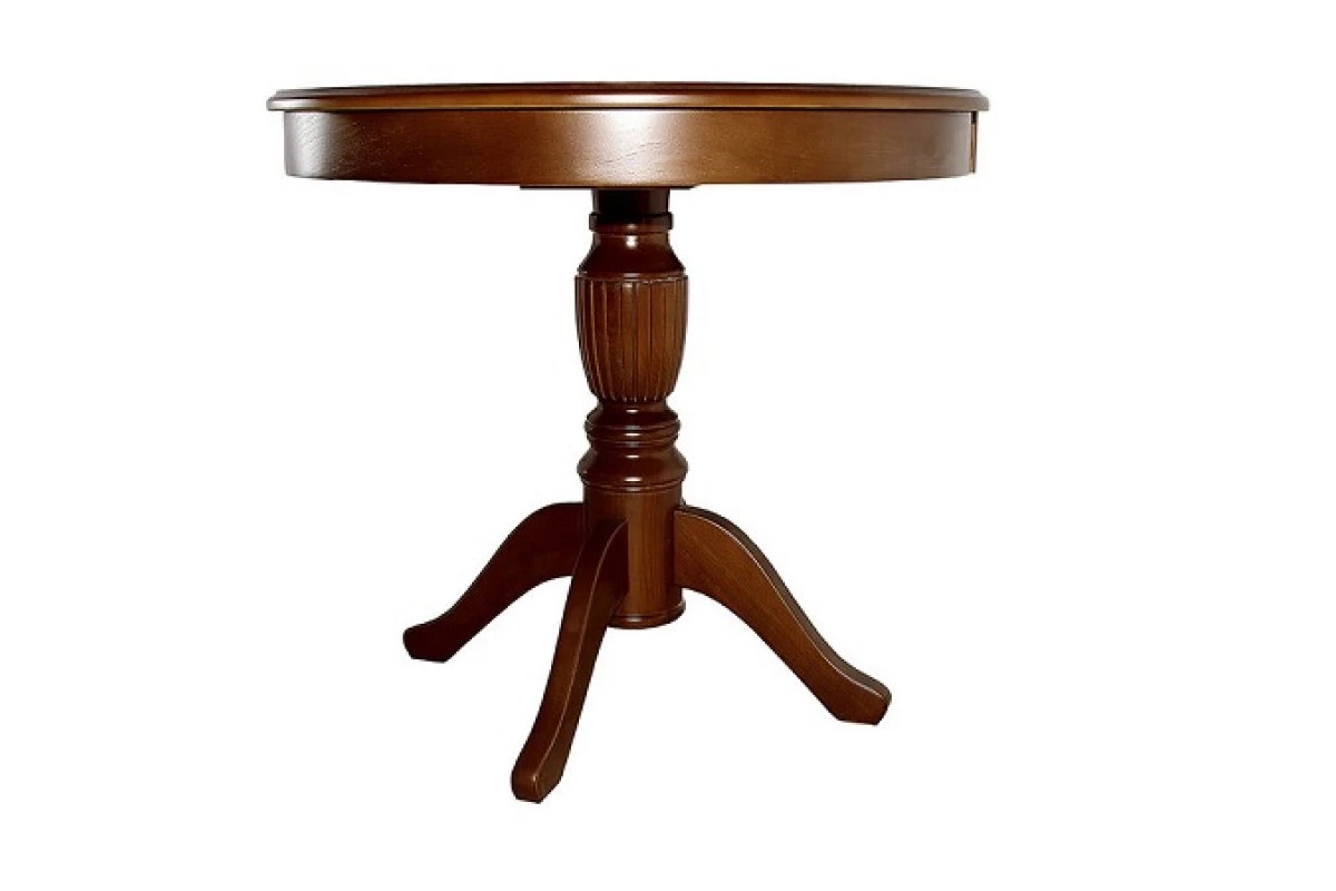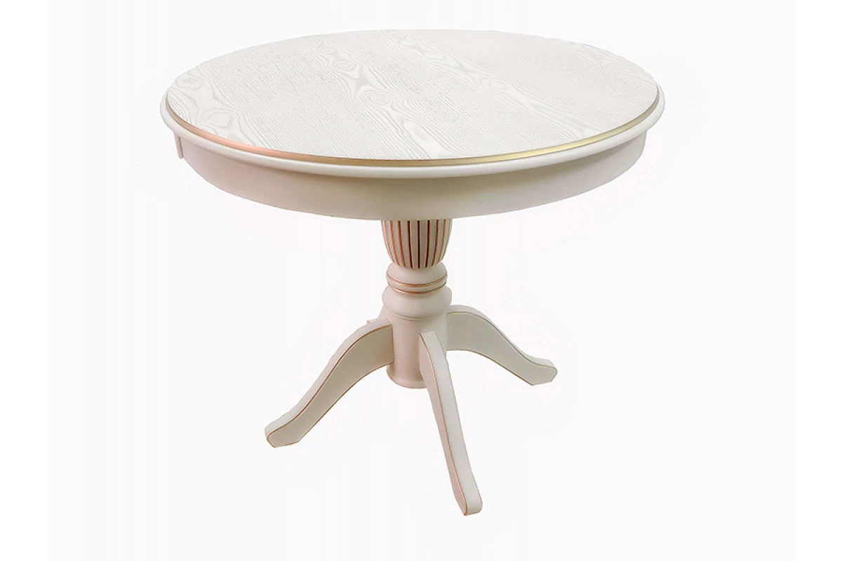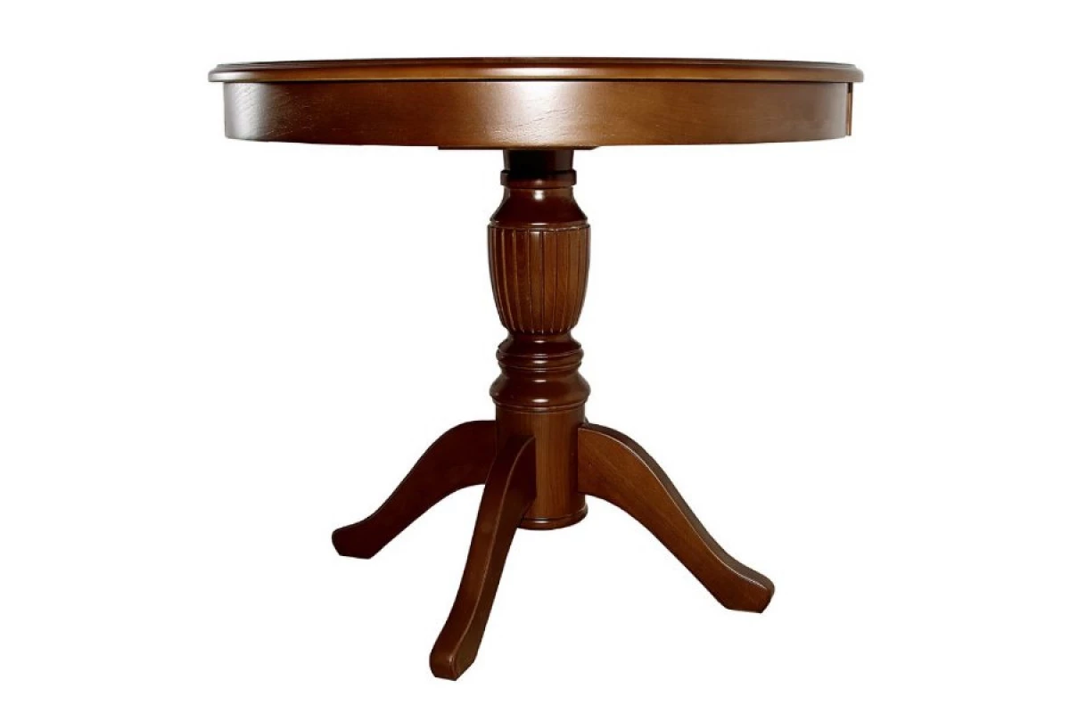 Особенность круглых обеденных столов заключается в том, что они, с одной стороны, не самые эффективные с точки зрения рассадки гостей и занимаемой площади, но при этом они сами по себе не такие большие как прямоугольные.Массивная точеная опора стола, как и собственно ножки выполнены из натурального бука, столешница из мдф декорирована шпоном натурального ясеня. По всей ширине кромка фрезерована сложным профилем. Рисунок текстуры натурального ясеня один из самых красивых среди пород дерева использующихся при производстве мебели в нашей стране. Столы в цветах белый ясень и орех не закрывают этот великолепный неповторимый естественный рисунок и такие столы можно использовать без дополнительного текстиля. Столешница стола обрамлена круглой царгой, которая придает изделию классический вид. Цве
