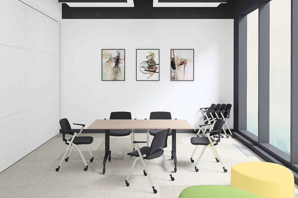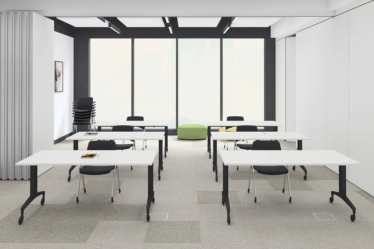 Серия отличается оригинальными моделями складных столов, с геометричным дизайном опор и красивым сочетанием декора. С ними можно составить самые разные конфигурации для командной работы. Столы Setup подходят для установки в большое количество помещений: учебные аудитории, конференц-залы, переговорные. Также эту мебель можно фиксировать в вертикальном положении, благодаря чему она занимает мало места при перевозке.