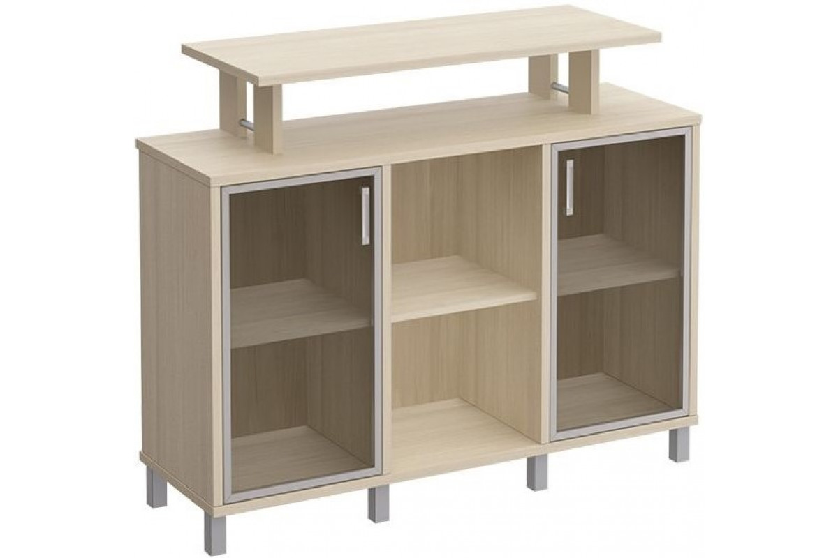 Стеллаж низкий с надстройкой и стеклянными дверками В 801-512