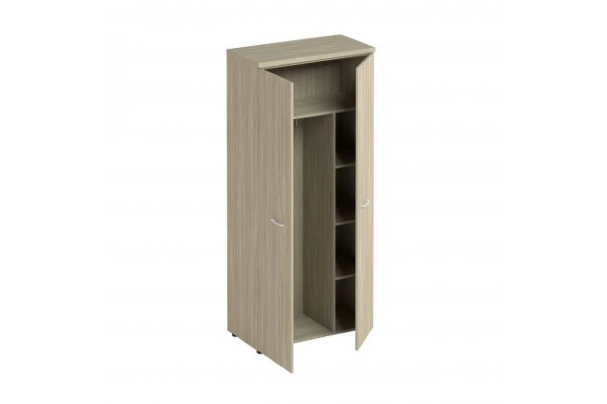 Ламинированная ДСтП, кромка ПВХ Топ - 32 мм, кромка ПВХ 2 мм. Каркас, полки и двери шкафа - 18 мм, кромка ПВХ 0,4 мм. Ручки - металлические, цвет - «сатин» Особенности: Шкаф укомплектован фиксированной по высоте полкой под головные уборы с выдвижной штангой для одежды Внутреннее пространство шкафа разделено вертикальной перегородкой на 2 секции Шкаф укомплектован тремя полками для личных вещей В шкафу применены двери из ЛДСтП без замков Задняя стенка изготовлена из ЛДстП 10 мм и установлена в пазы корпуса шкафа Шкаф собирается на эксцентриковой стяжке Шкаф поставляется в разобранном виде