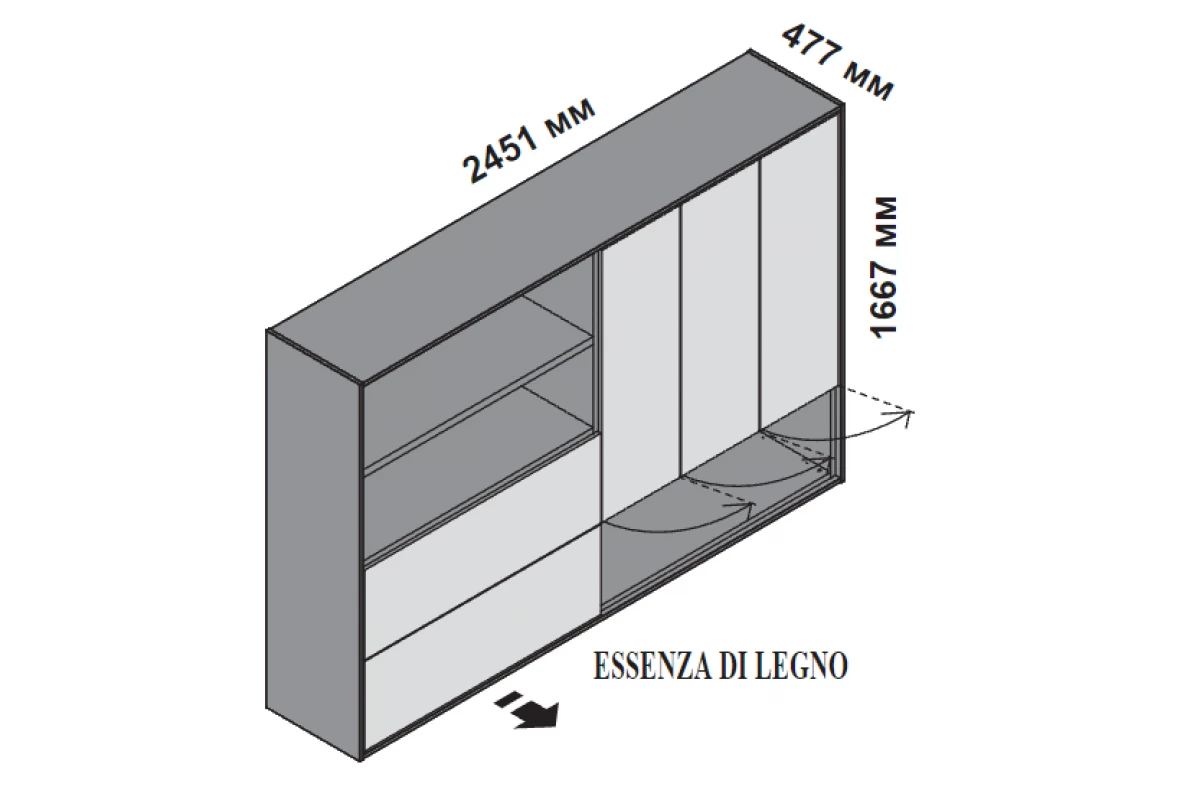 Монолитный шкаф с 3 дверцами и 2 ящиками 174325 Элит