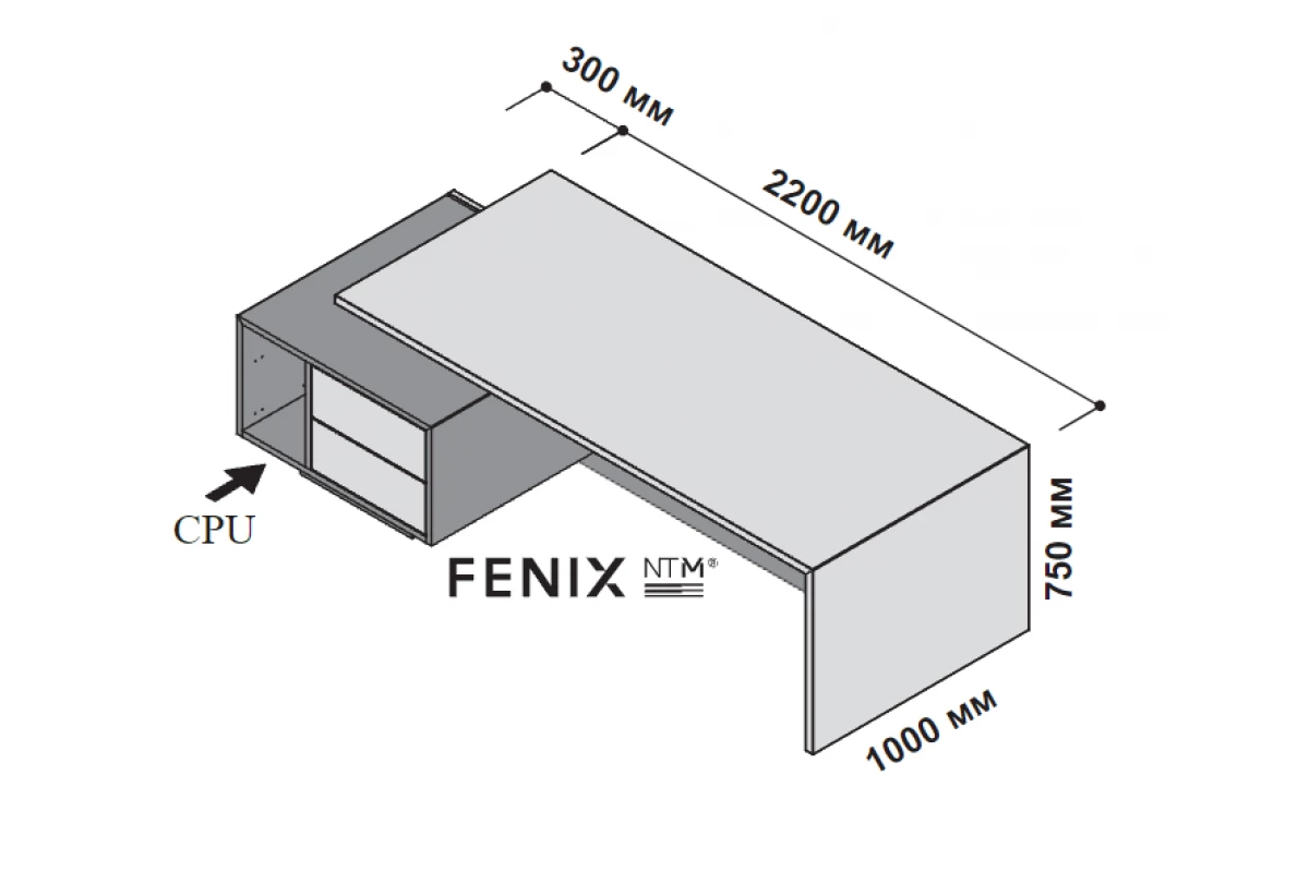 Стол левосторонний с тумбой под компьютер 250x115 см (FENIX) 174285