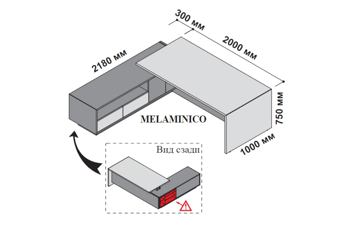 Стол левосторонний с опорной тумбой 230x218 см (меламин) 174289