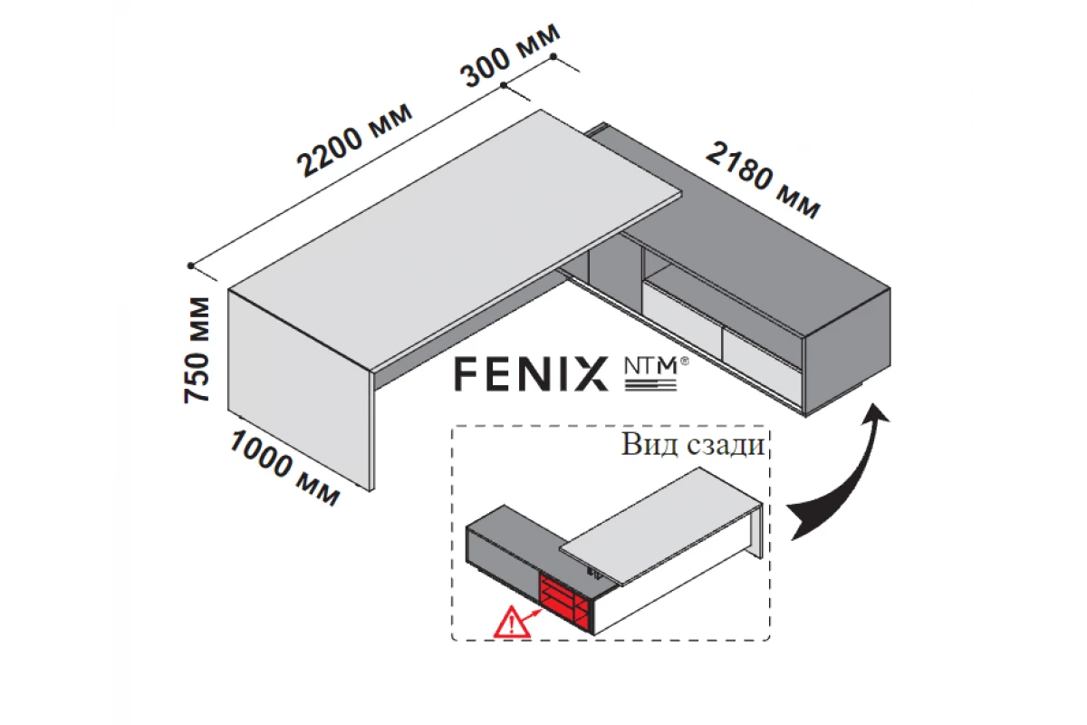 Стол правосторонний с опорной тумбой 250x218 см (FENIX) 174296