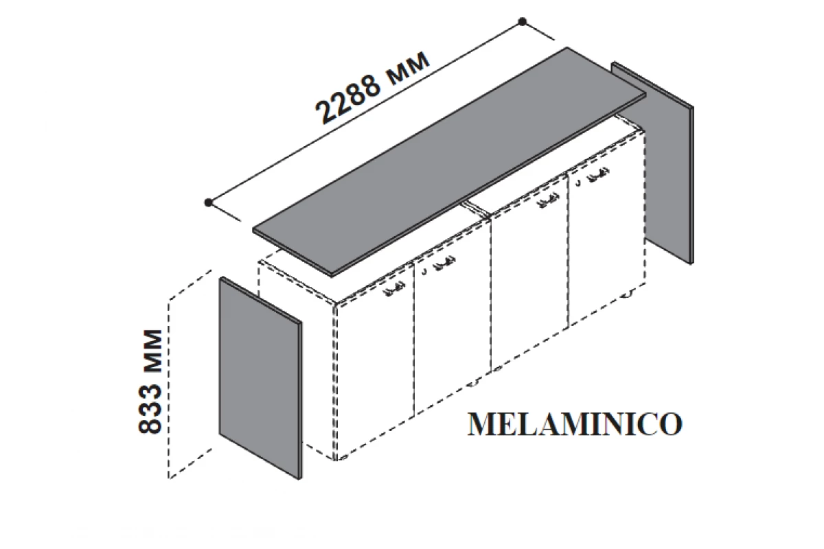 Топ для шкафов с боковыми панелями, высота 83.3 см, ширина 273.8 см 174105
