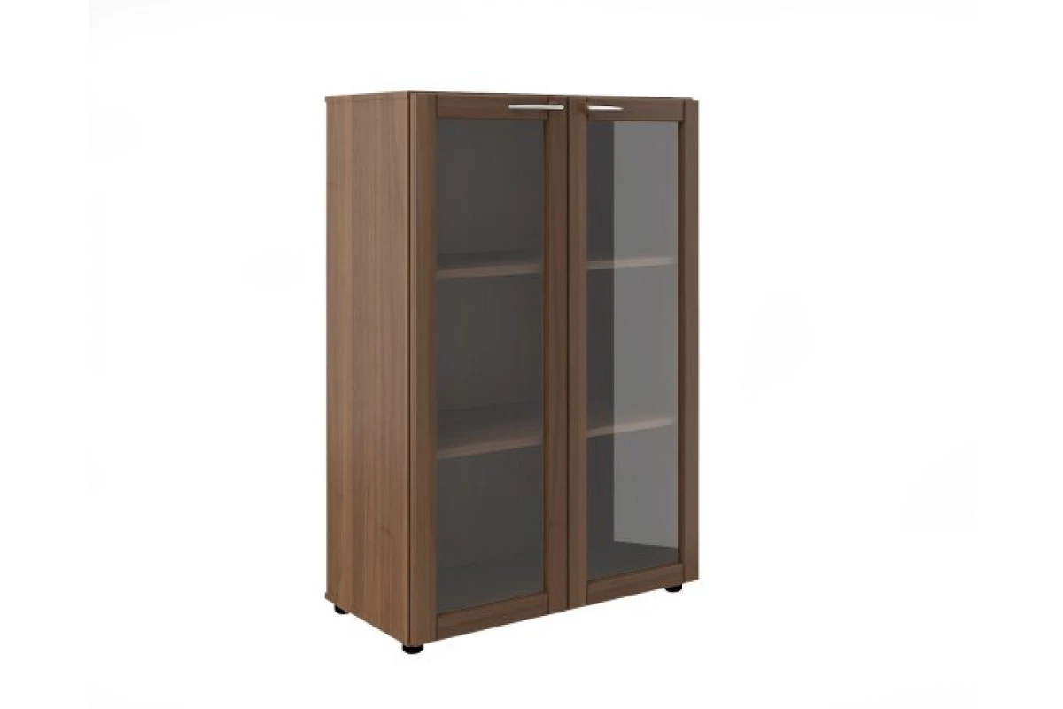 Шкаф широкий средний со стеклом в дер. раме (без топа и боковин) МЛ-2.3+8.3 - это оптимальный и надежный вариант для хранения документов, книг, папок и прочих вещей. Наша компания-поставщик продает этот шкаф в цветах Орех и Махагон. Мебель можно подобрать под любой офисный интерьер.
