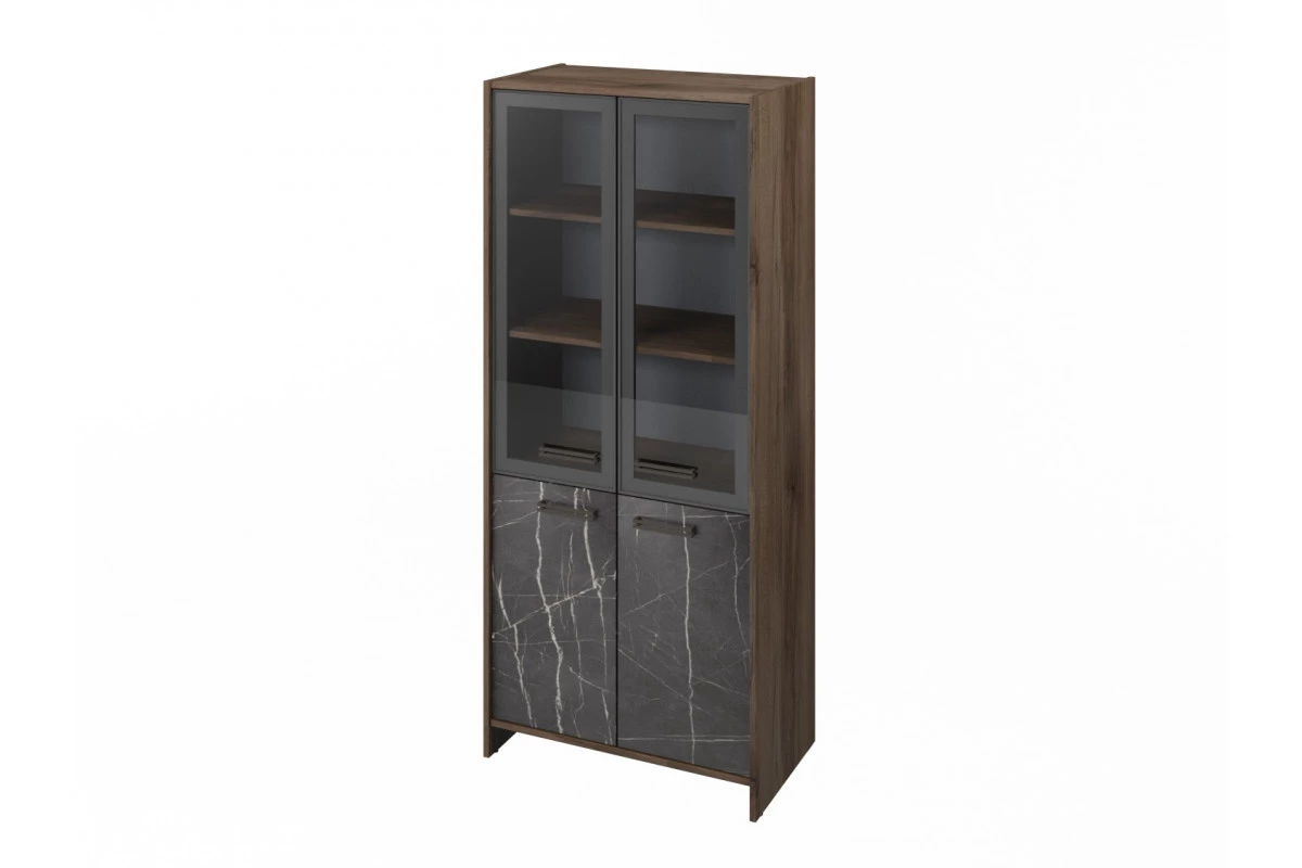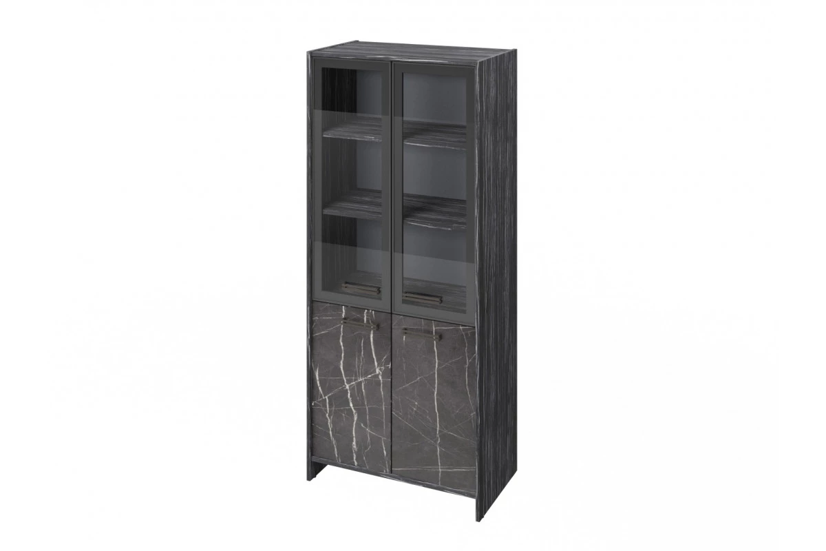 Шкаф для документов закрытый FB-671.G. Шкаф для документов широкий с 4 полками закрытый. Сверху стеклянные двери в алюминиевом профиле. В нижней части двери ЛМДФ (Лак глянец) (G). Фурнитура черная.