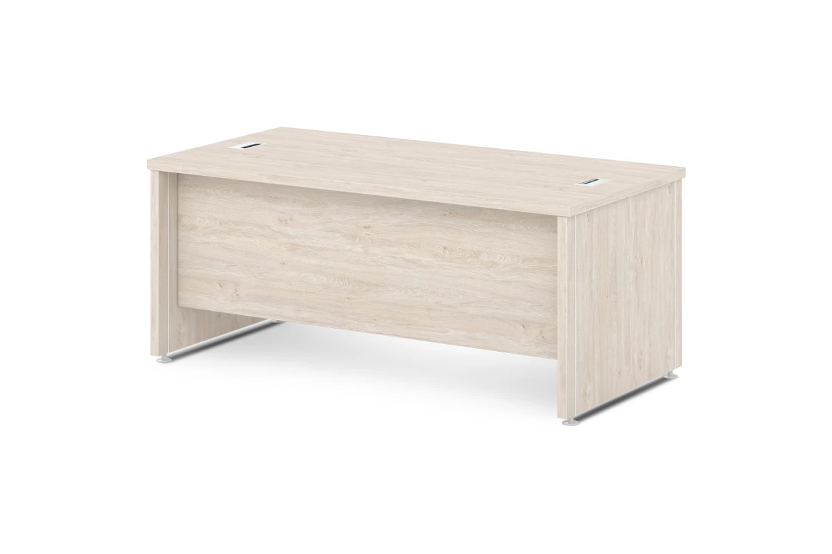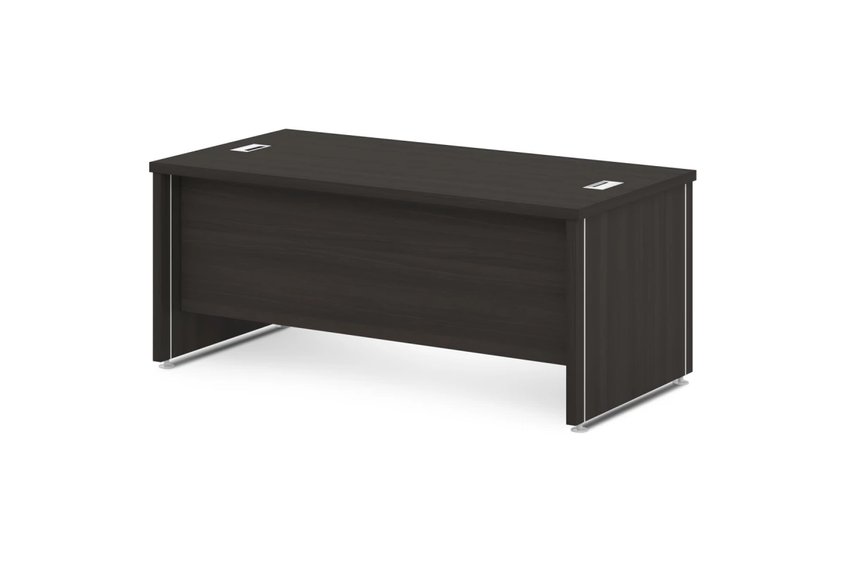 Стол руководителя с двумя заглушками кабель-канала. Артикул: S-118. Размер: 1800х900х760. ЛДСП: 38 мм, 16 мм. Кромка: ABS 2 мм и 0,4 мм.,Столешница изготовлена из ЛДСП 38 мм и оклеена противоударной кромкой ABS 2 мм. Опоры изготовлены из ЛДСП 38 мм и оклеены противоударной кромкой ABS 2 мм и 0,4 мм. Соединитель изготовлен из ЛДСП 16 мм и оклеен противоударной кромкой ABS 2 мм. В столешницу вмонтированы 2 лючка кабель канала. Опоры снабжены компенсатором неровности пола и вмонтированными декоративными профилями. Все соединительные элементы оснащены фурнитурой для многократной сборки и разборки изделия. Используется фурнитура ведущих европейских производителей.