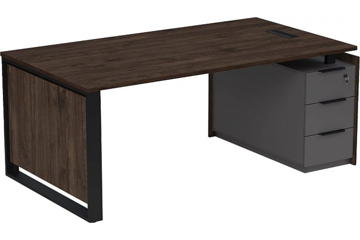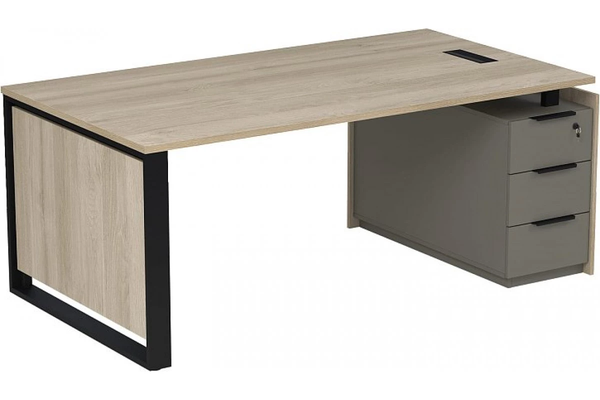 Стол рабочий с лючком на опорной угловой тумбе