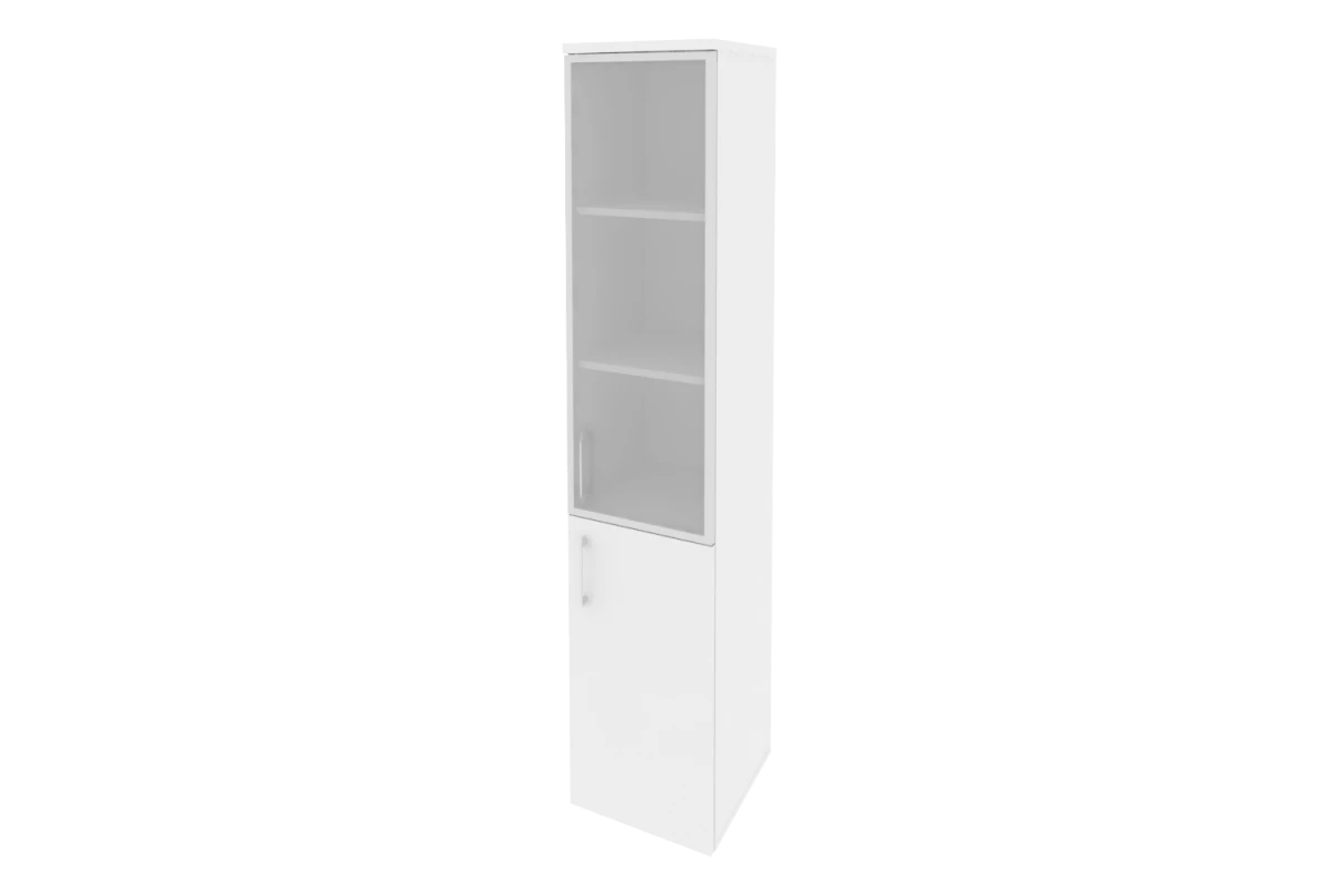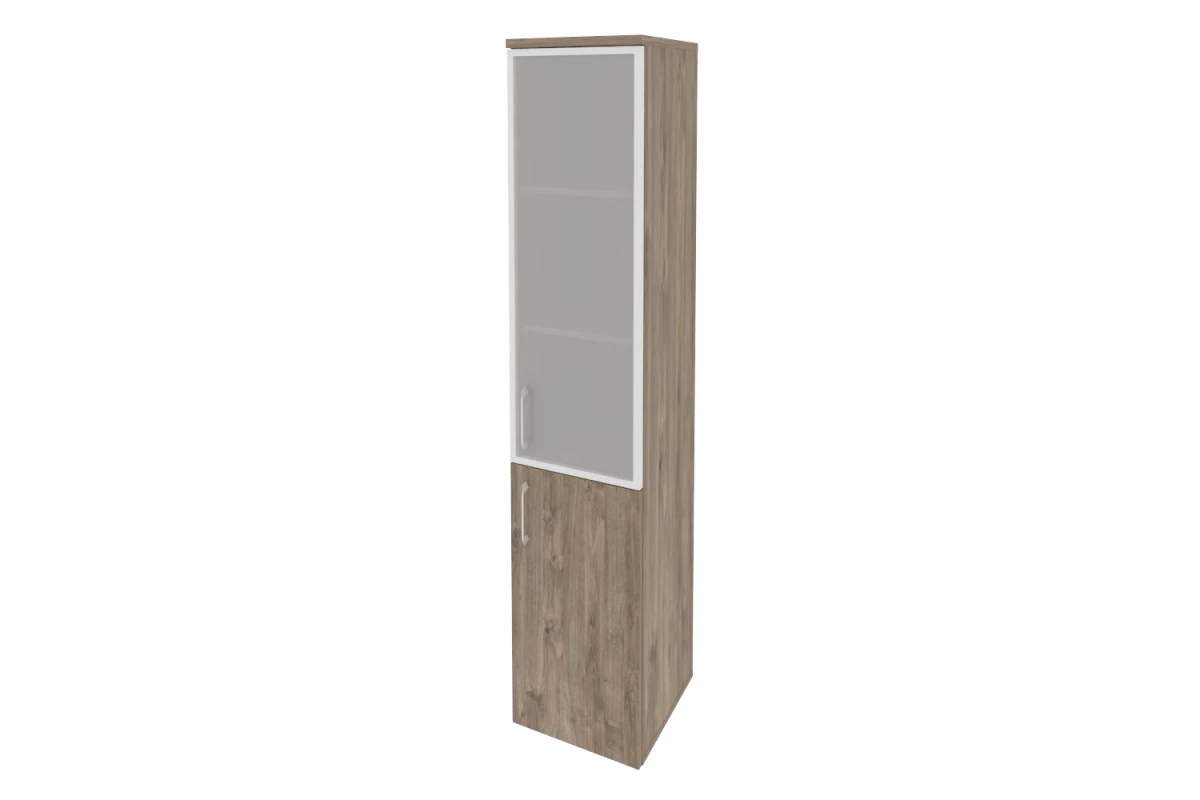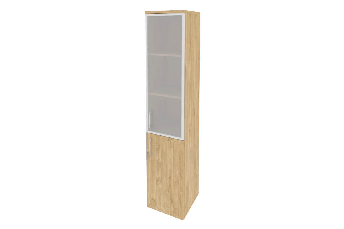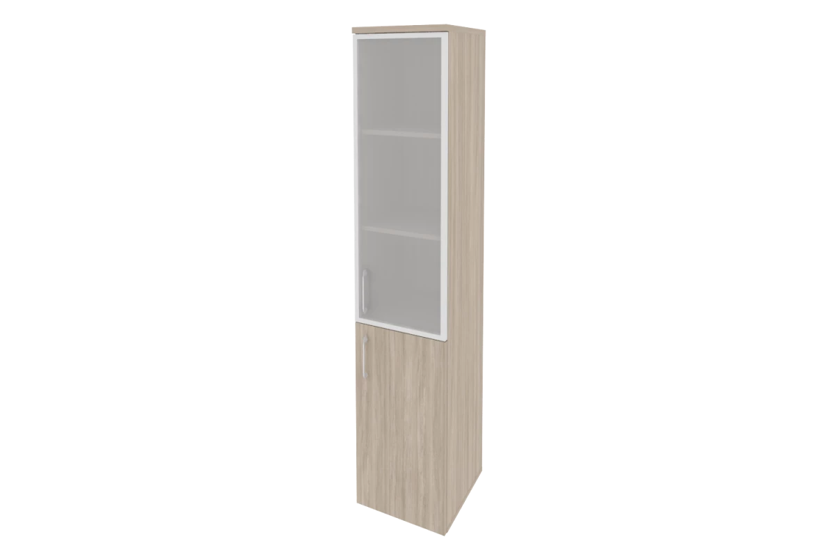 Шкаф высокий узкий левый (1 низкий фасад ЛДСП + 1 низкий фасад стекло в раме) O.SU-1.4R(L)