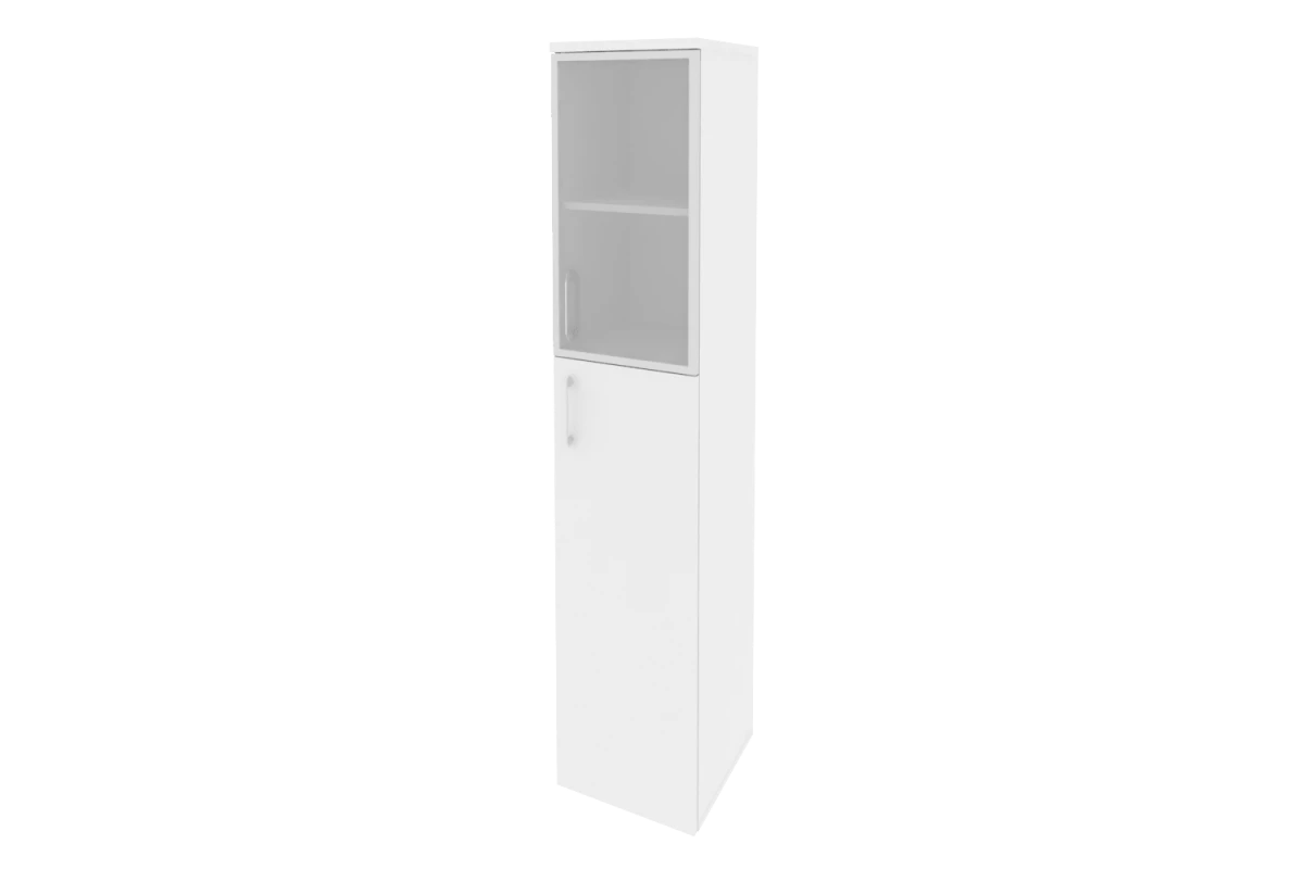 Шкаф высокий узкий левый (1 средний фасад ЛДСП + 1 низкий фасад стекло лакобель в раме) O.SU-1.7R(L) white/black