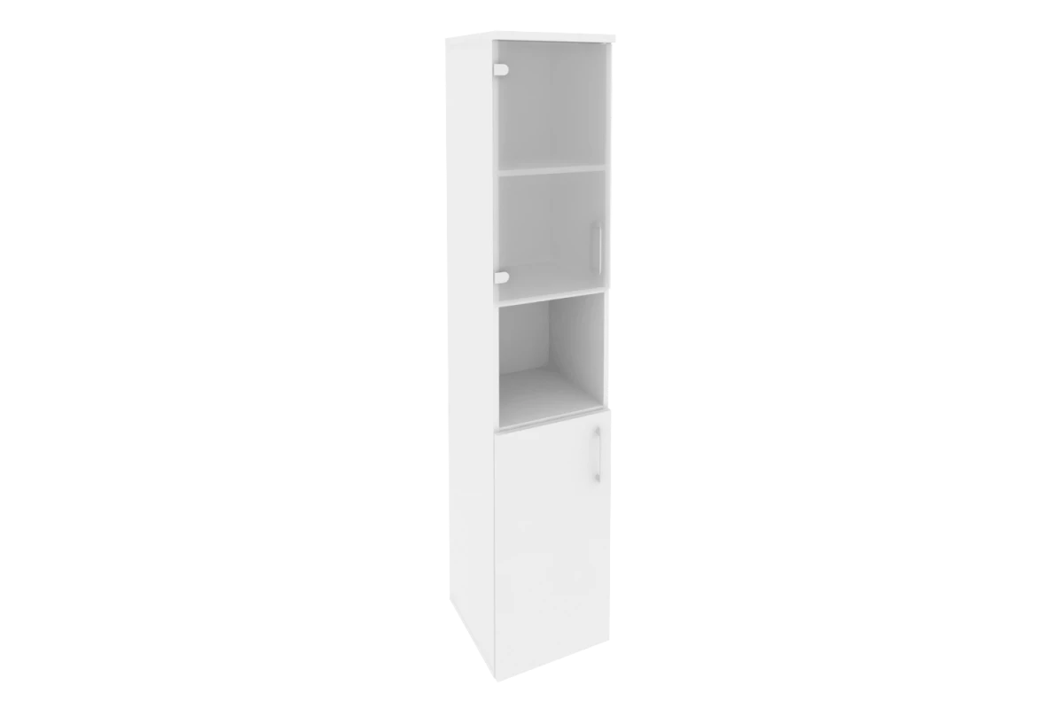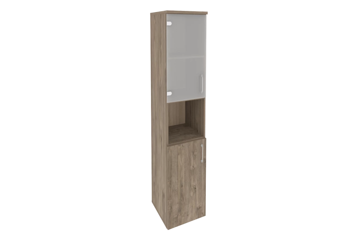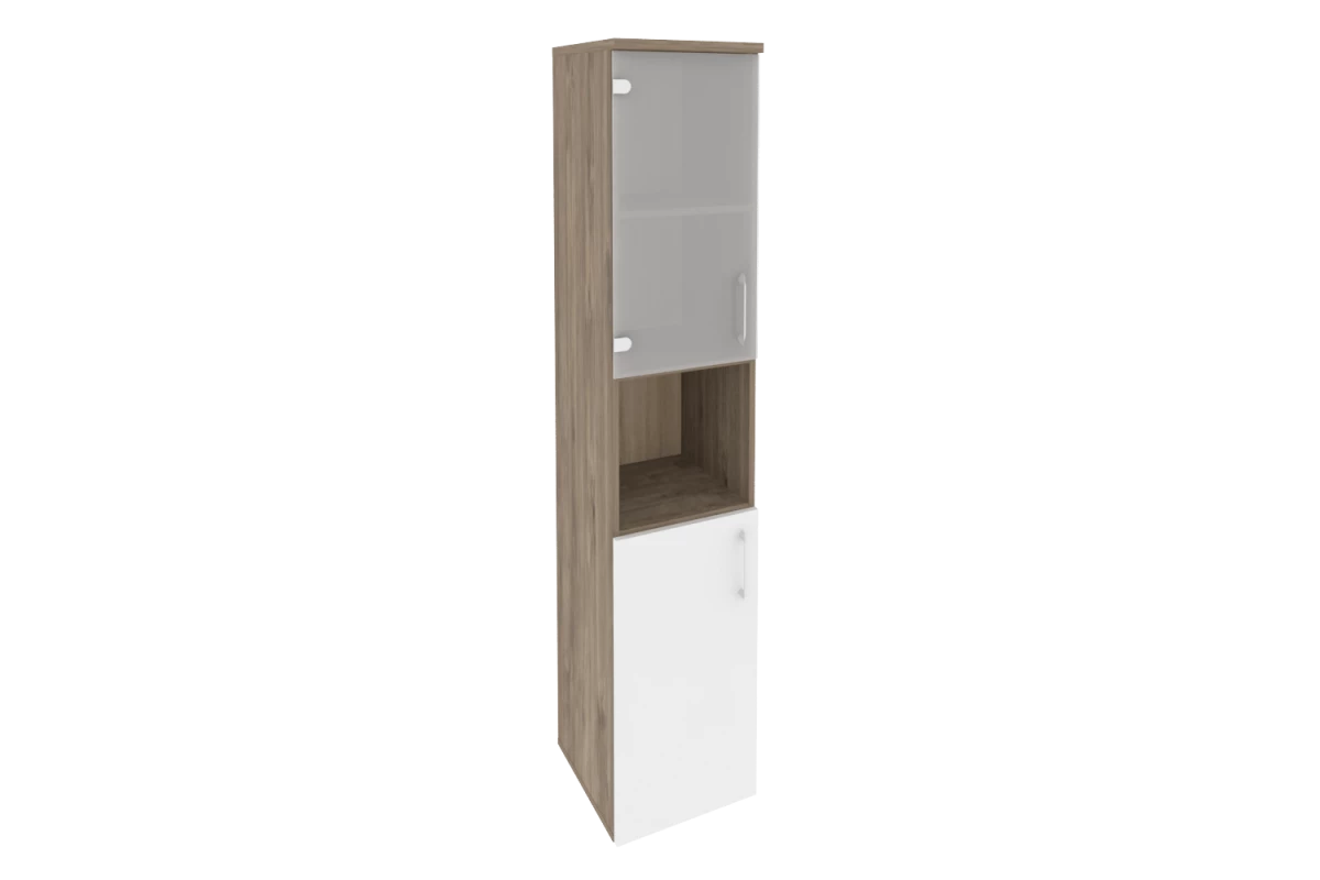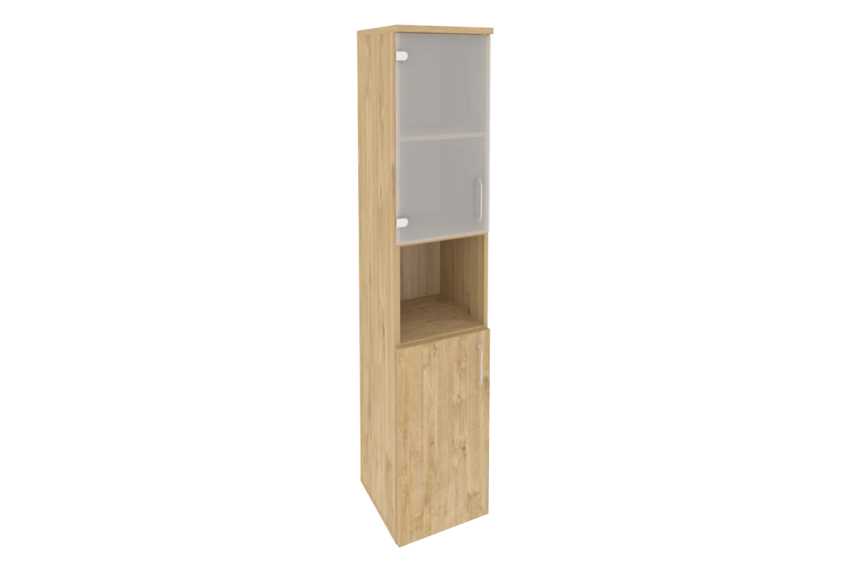 Шкаф высокий узкий левый (1 низкий фасад ЛДСП + 1 низкий фасад стекло в раме) O.SU-1.4R(L)