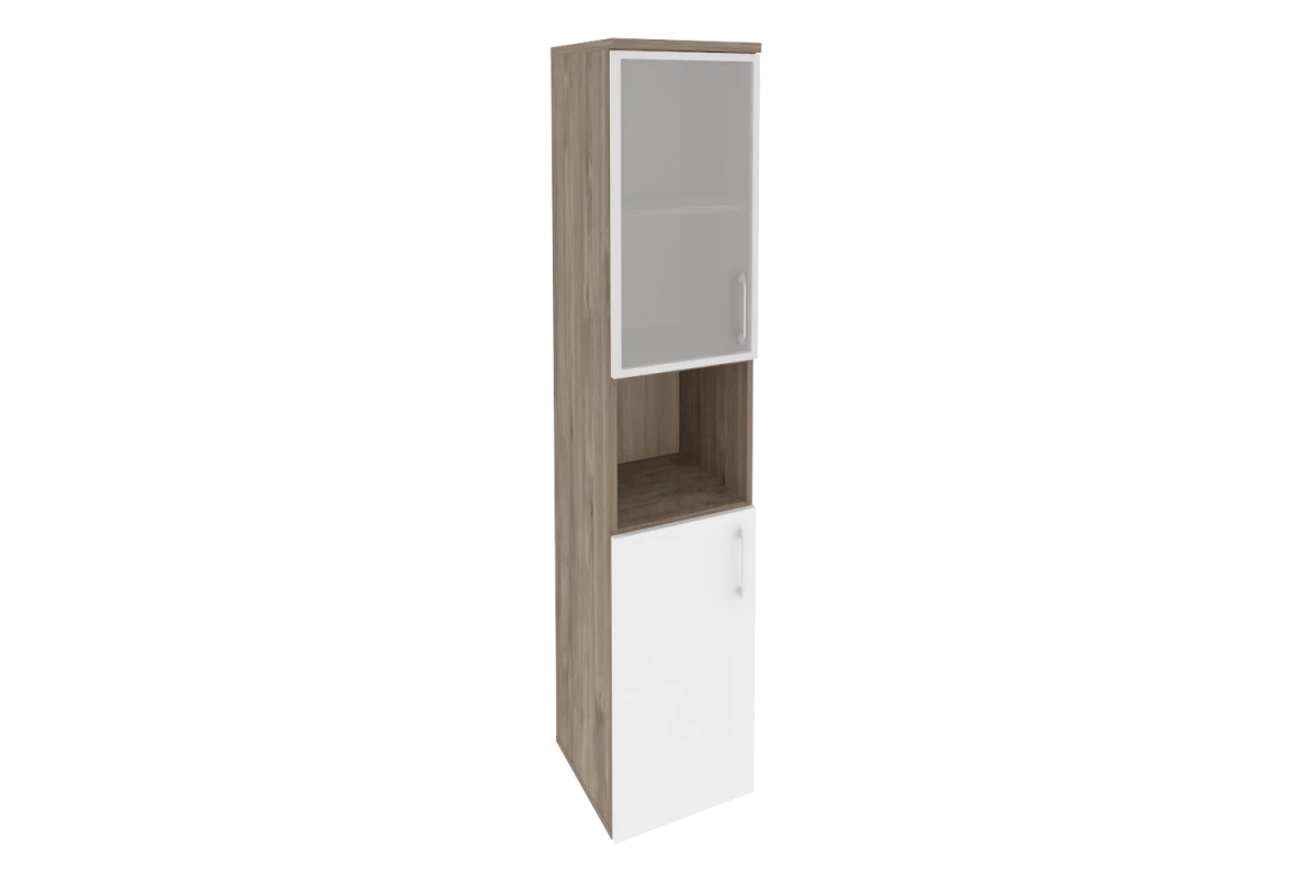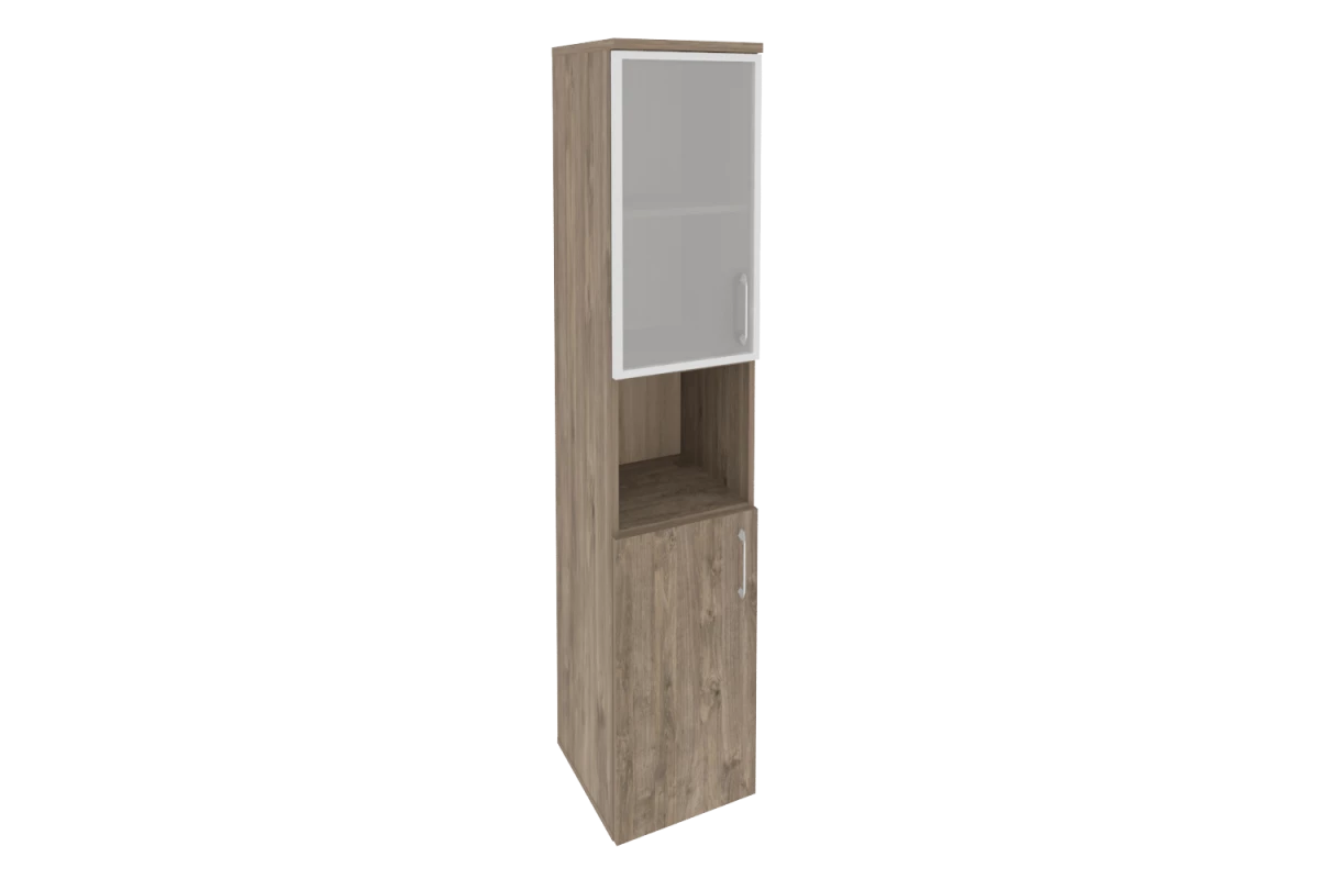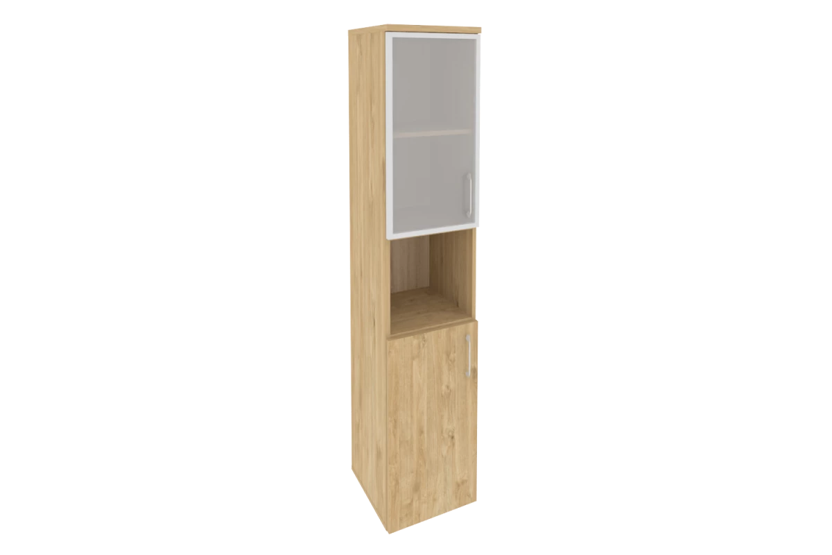 Шкаф высокий узкий левый (1 средний фасад ЛДСП + 1 низкий фасад стекло) O.SU-1.7(L)