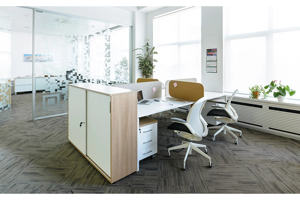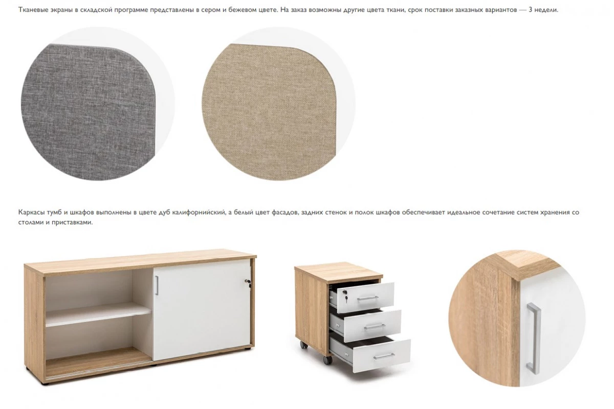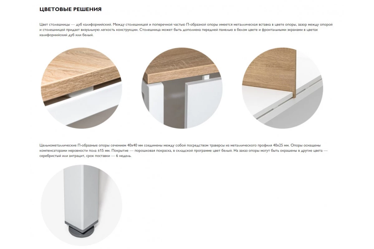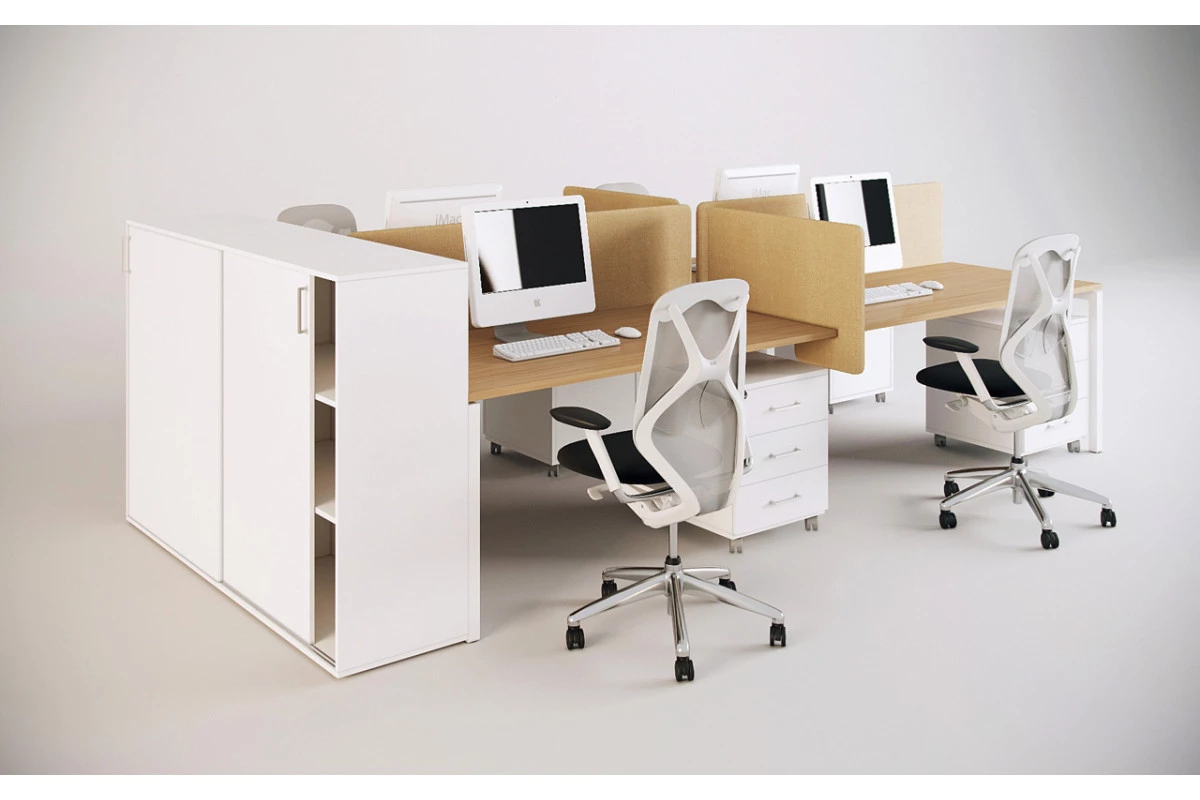 Продуманной конструкцией модулей и дополнительных элементов обеспечивается возможность создания безопасного, функционального, эргономичного и удобного пространства для персонала. Характерной чертой серии мебели выступает лаконичность современных дизайнов и стильность сочетания оттенков природного древесного цвета с белыми панелями и вставками. Подобный подход позволяет креативно оформлять любые современные офисы, а также визуально расширять небольшие помещения, наполняя их воздухом и светом.