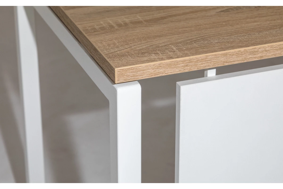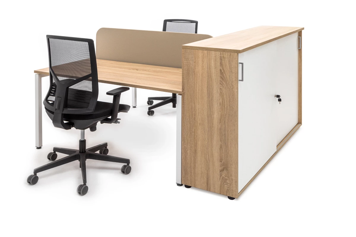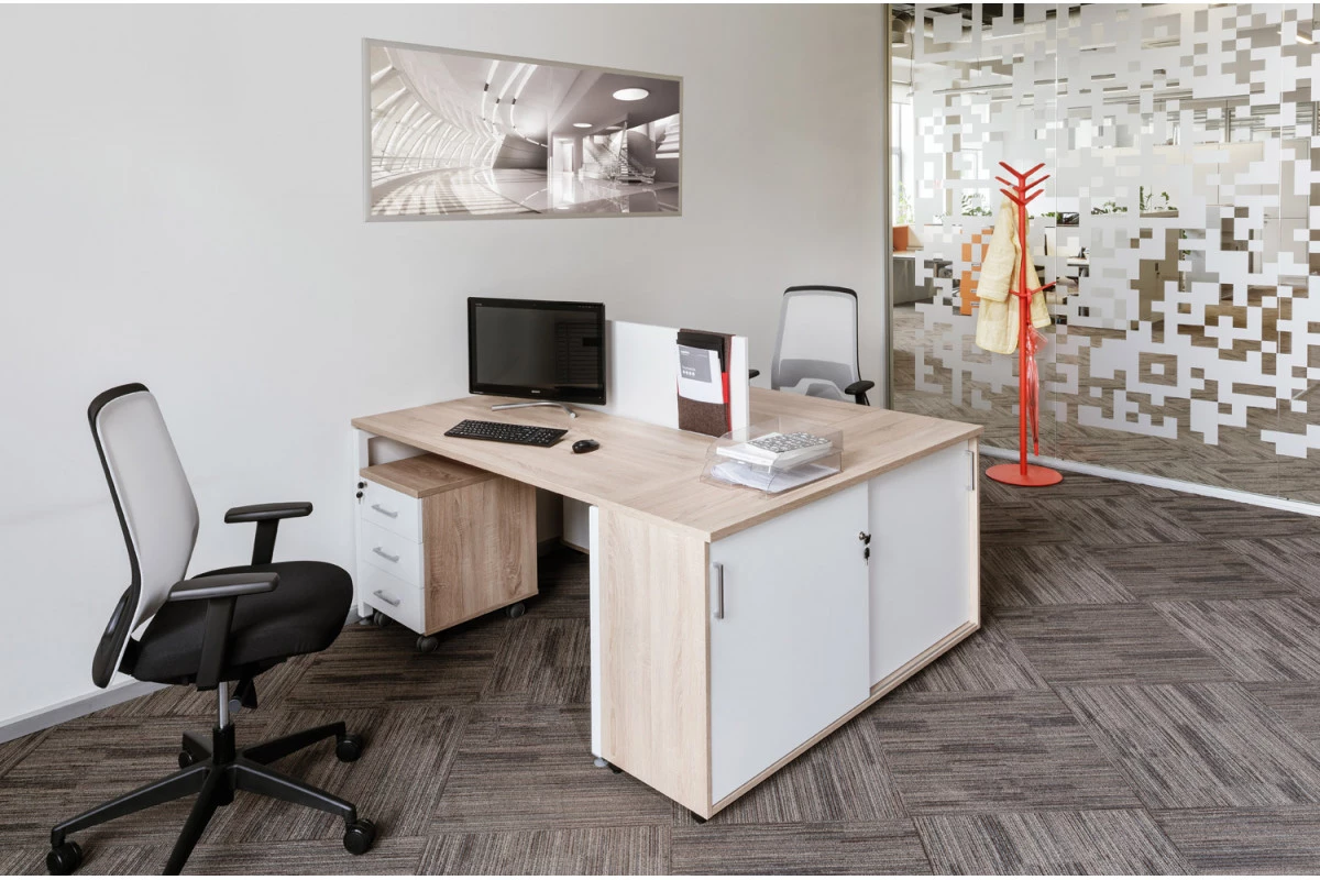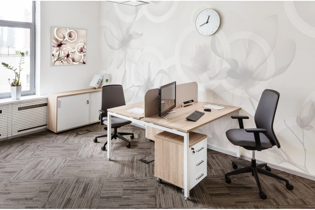 Продуманной конструкцией модулей и дополнительных элементов обеспечивается возможность создания безопасного, функционального, эргономичного и удобного пространства для персонала. Характерной чертой серии мебели выступает лаконичность современных дизайнов и стильность сочетания оттенков природного древесного цвета с белыми панелями и вставками. Подобный подход позволяет креативно оформлять любые современные офисы, а также визуально расширять небольшие помещения, наполняя их воздухом и светом.
