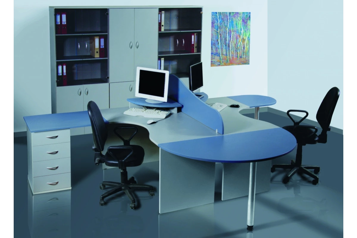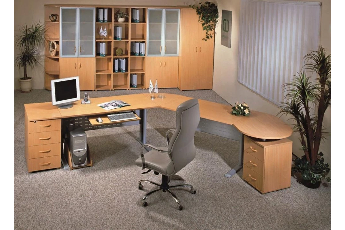 Коллекция гармонично сочетает в себе консервативность внушительных форм с функциональностью рабочих площадей. Она обладает приятным внешним видом, отличается повышенным уровнем удобства и высоким качеством. Широта возможностей комплектации обеспечивают возможность адаптации к помещениям любых размеров и форм. Практичность линейки уравновешивается оригинальным сочетанием волнистых и прямых линий.