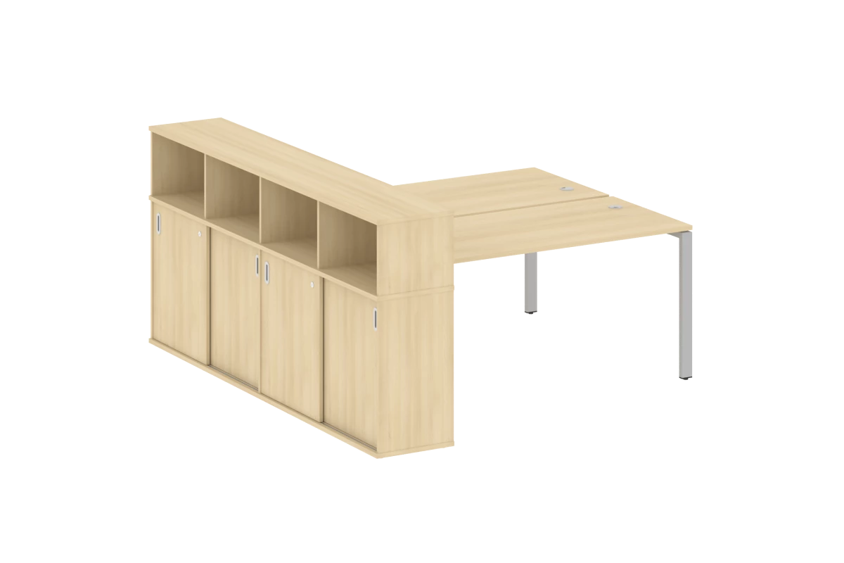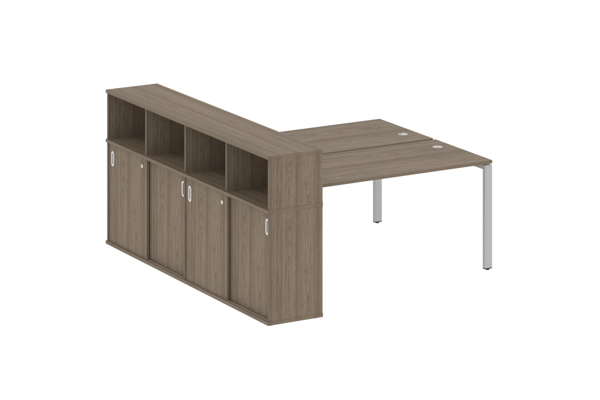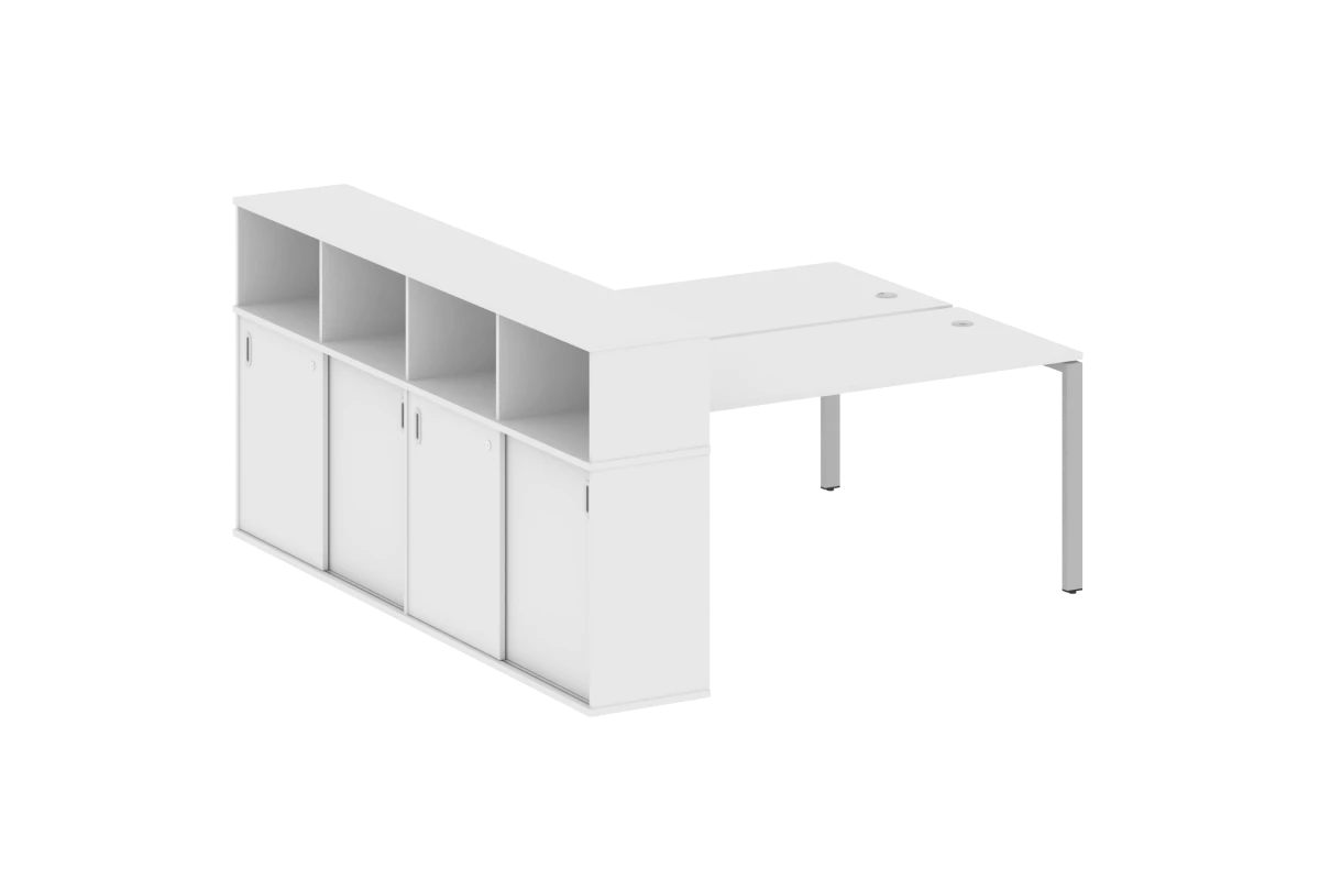 Рабочая станция на П-образном м/к с опорным шкафом-купе БП.РС-СШК-4.4 Metal System