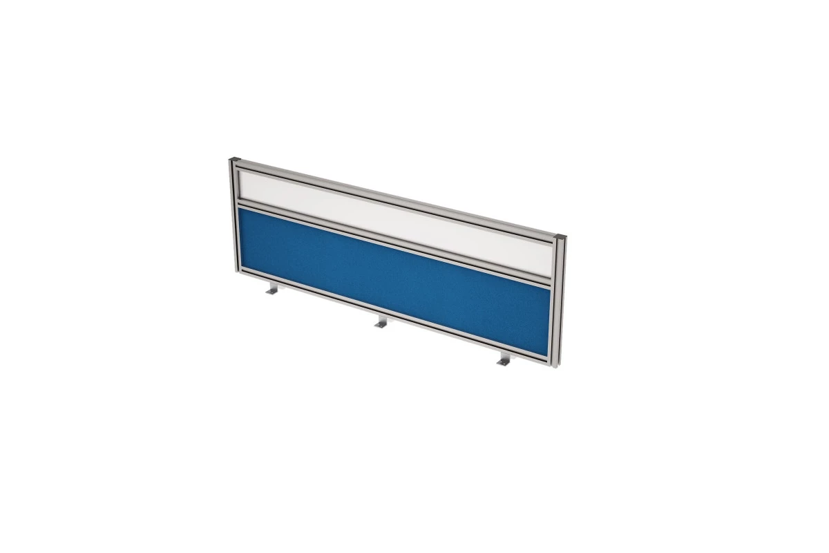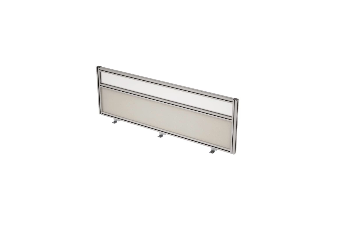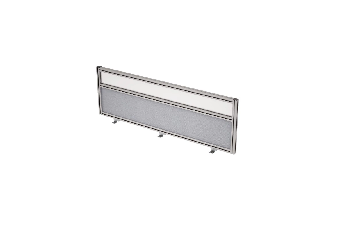 Тканевый фронтальный барьер 9БТС.0415.6 в алюминиевом профиле, с матовой стеклянной вставкой для серии мебели для персонала Глосс (Gloss). Барьер можно подобрать под любой офисный интерьер.