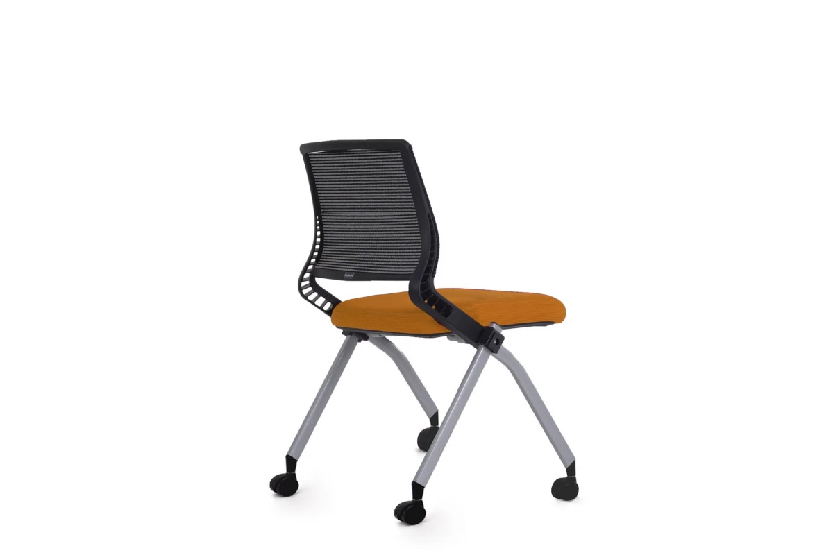 Черный каркас спинки, черные подлокотники, сидение с кожухом, колесики на 4-х опорах.
