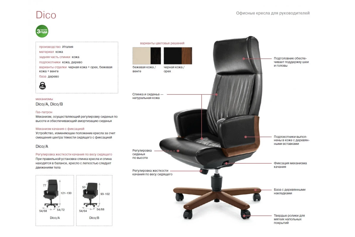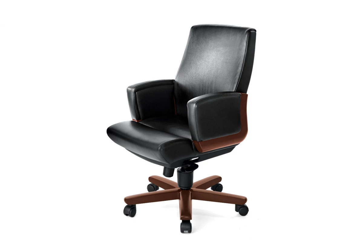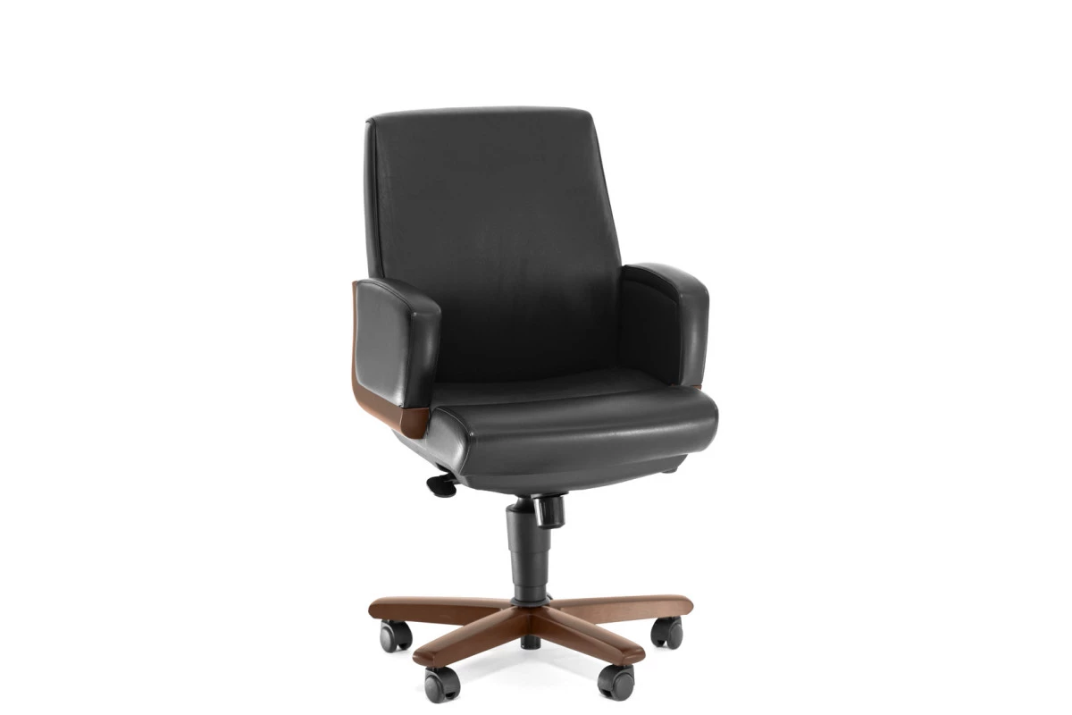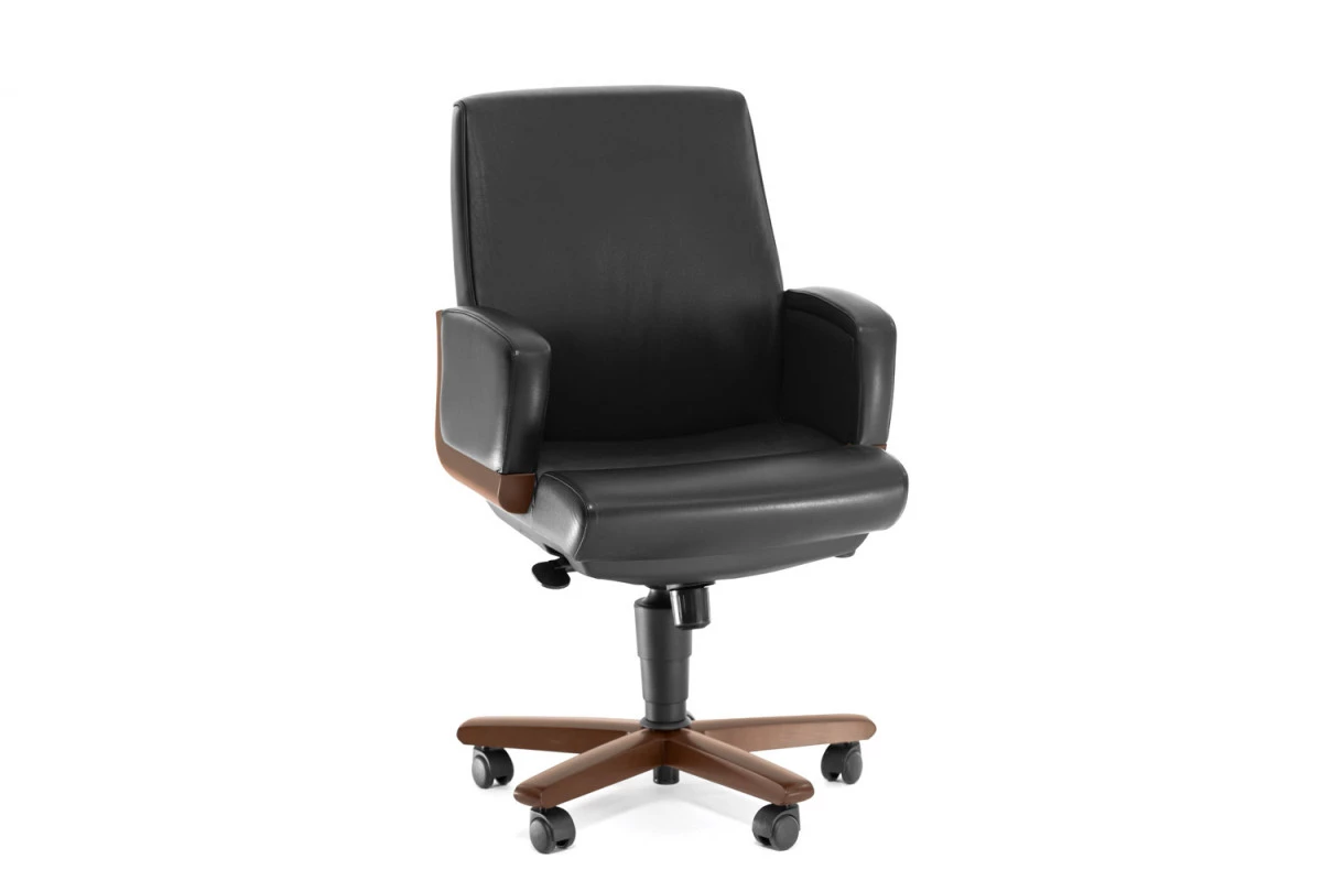 Кресло для посетителей DICO B орех/черная кожа