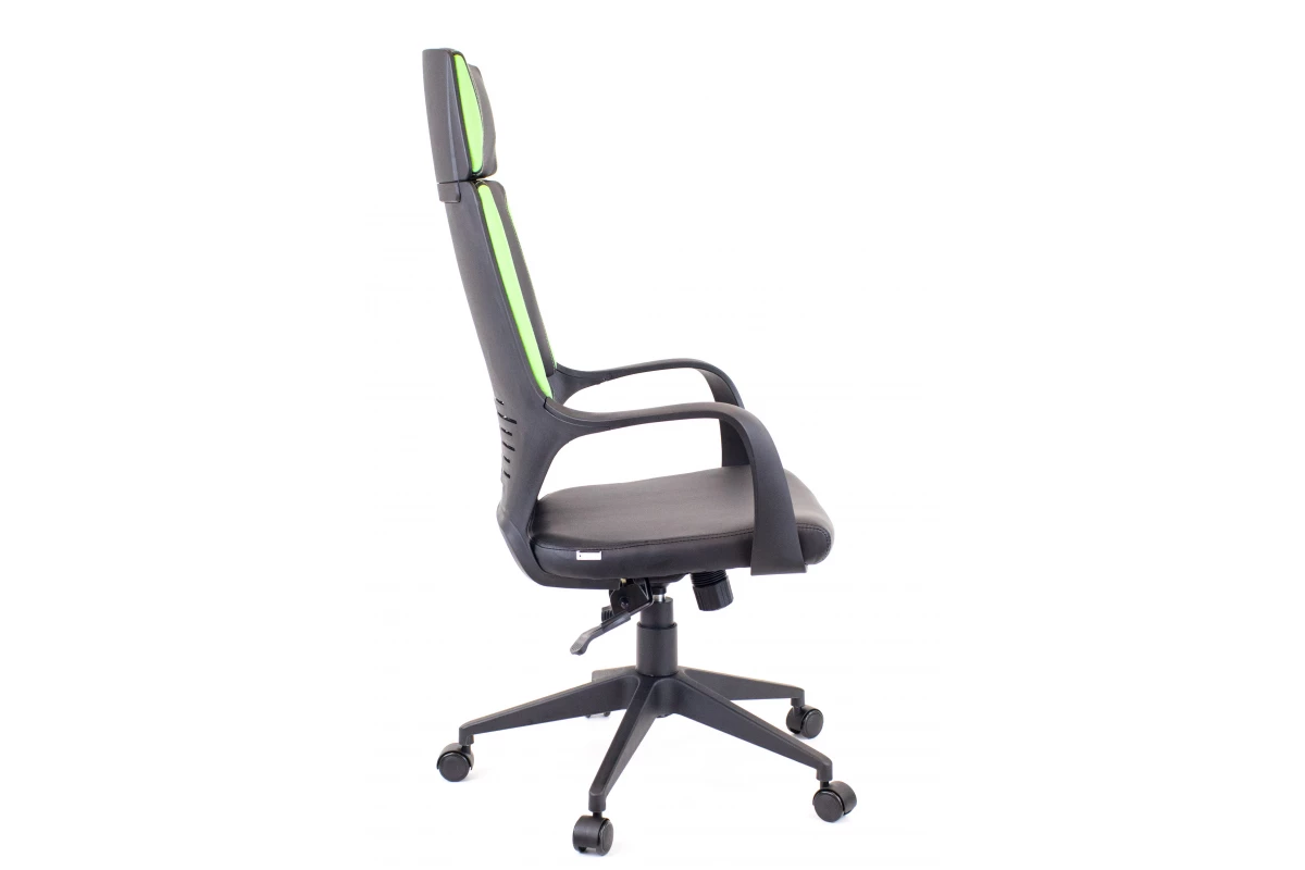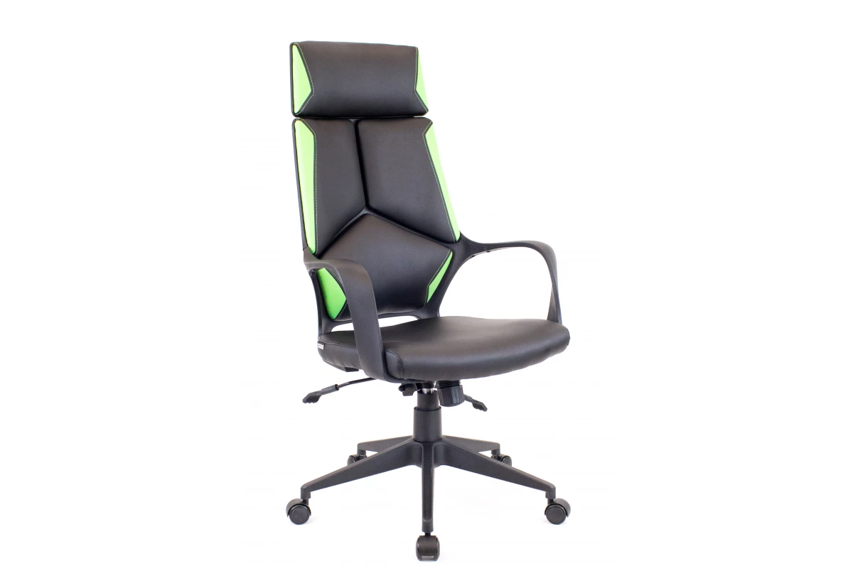 Кресло Trio Black TМ Экокожа Черный/Зеленый - удобный и комфортный вариант для обустройства трудового пространства. Подходит для установки в кабинеты руководства. Наша компания-поставщик Про-офис продает это кресло в обивке из кожи черного\белого цвета.