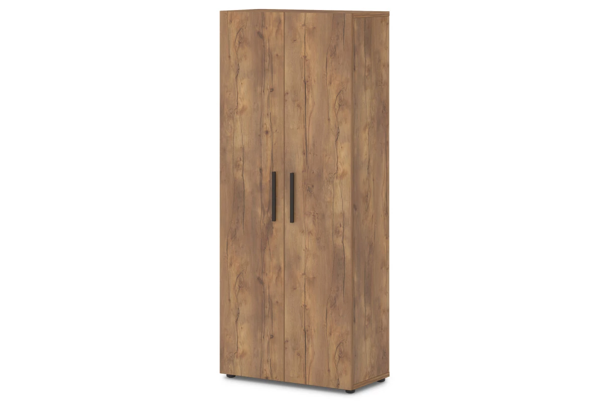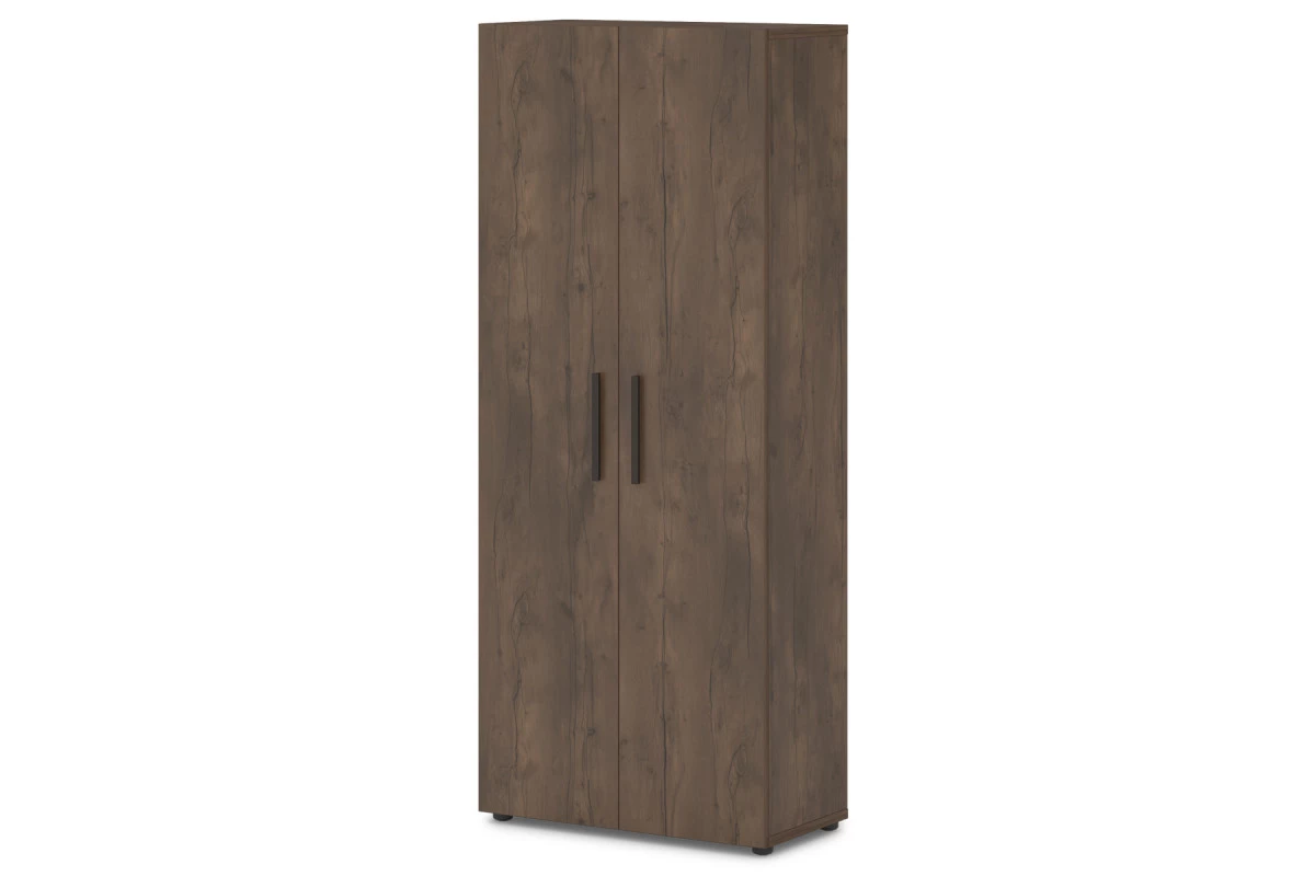 Офисный шкаф для одежды, поперечная вешалка-штанга.,Артикул: Т-721. Размер: 820х406х1970. ЛДСП: 25 мм, 18 мм, 10 мм. Кромка: ABS 2 мм и 0,4 мм.,Шкаф для одежды с поперечной овальной вешалкой штангой и отделениями для головных уборов и обуви. Верх, низ, горизонтали изготовлены из ЛДСП 25 мм и оклеены противоударной кромкой ABS 0,4 мм. Бока изготовлены из ЛДСП 18 мм и оклеены противоударной кромкой ABS 0,4 мм. Задняя стенка изготовлена из ЛДСП 10 мм. Двери изготовлены из ЛДСП 18 мм и оклеены противоударной кромкой ABS 2 мм. Опоры шкафа снабжены компенсатором неровности пола. Петли оснащены механизмом плавного закрывания. Все соединительные элементы оснащены фурнитурой для многократной сборки и разборки изделия. Используется фурнитура ведущих европейских производителей.