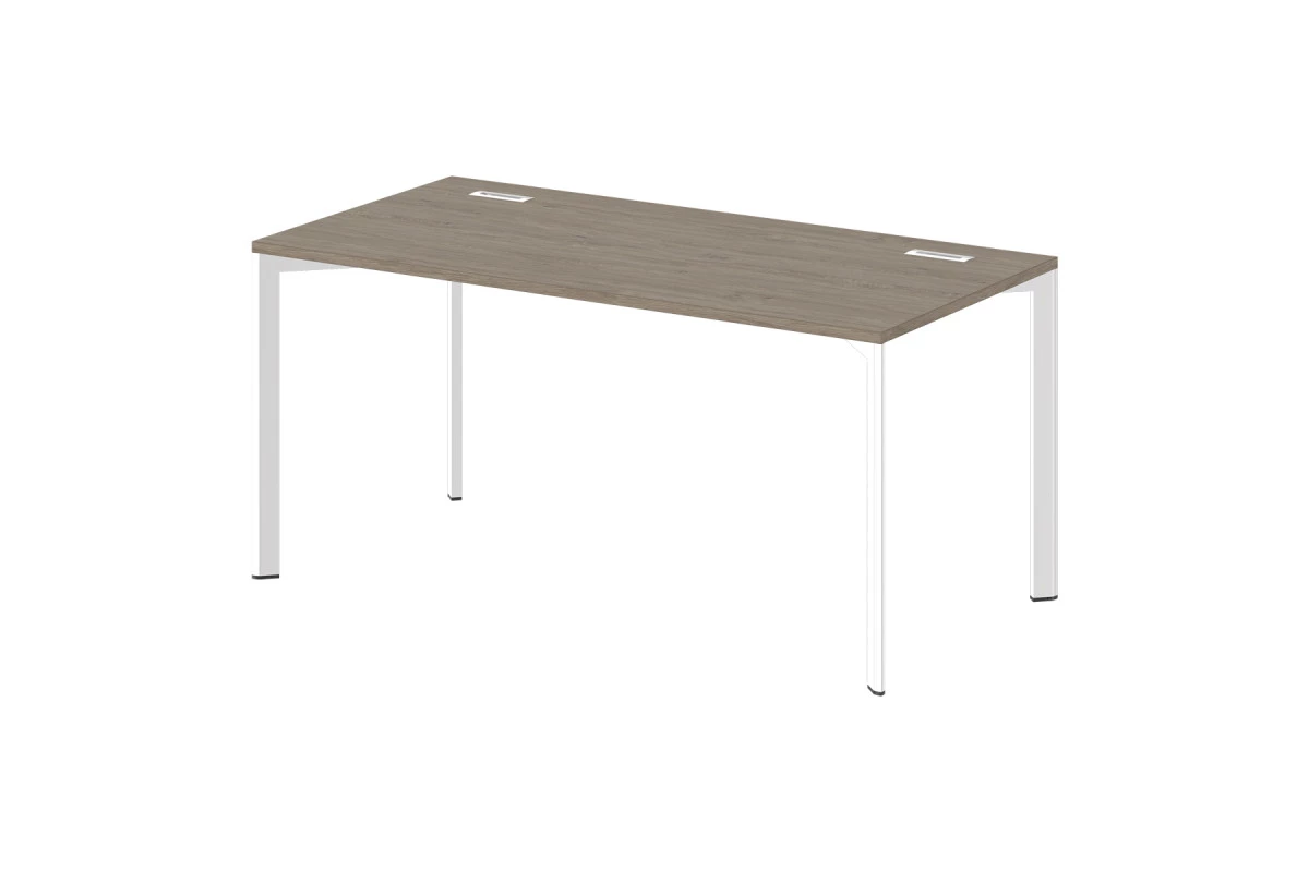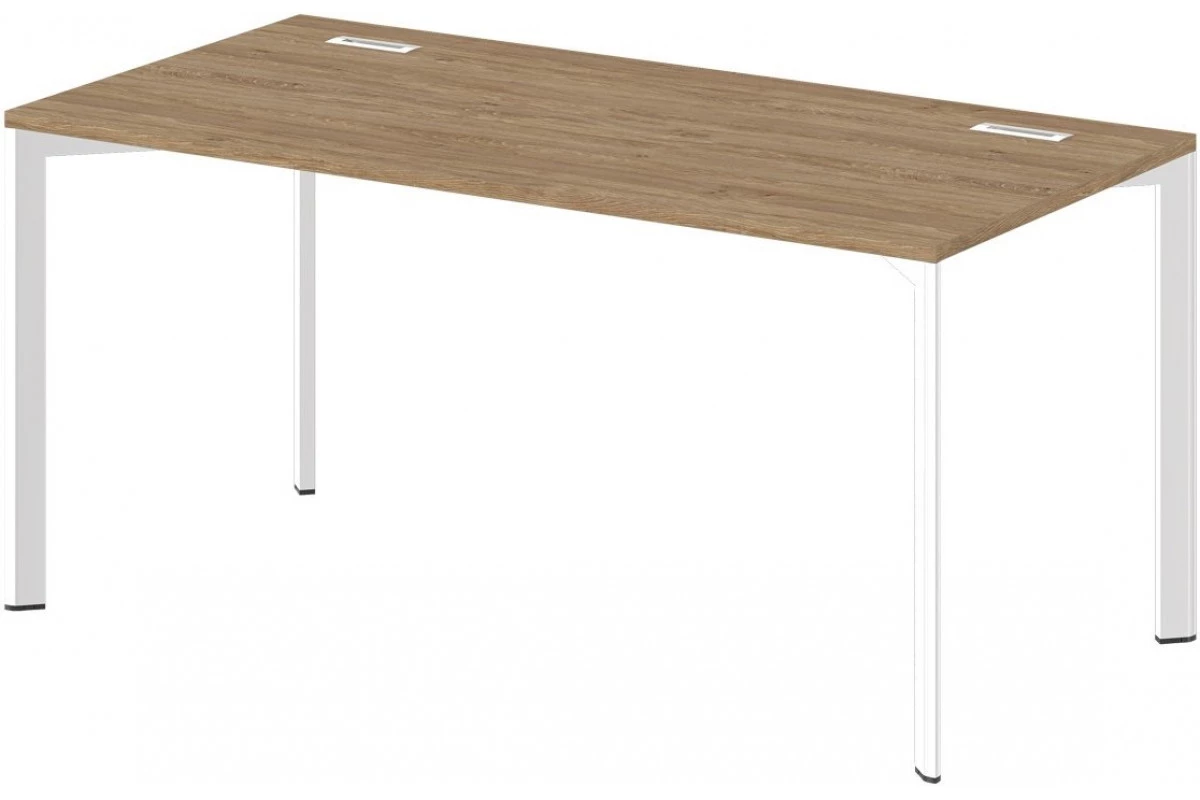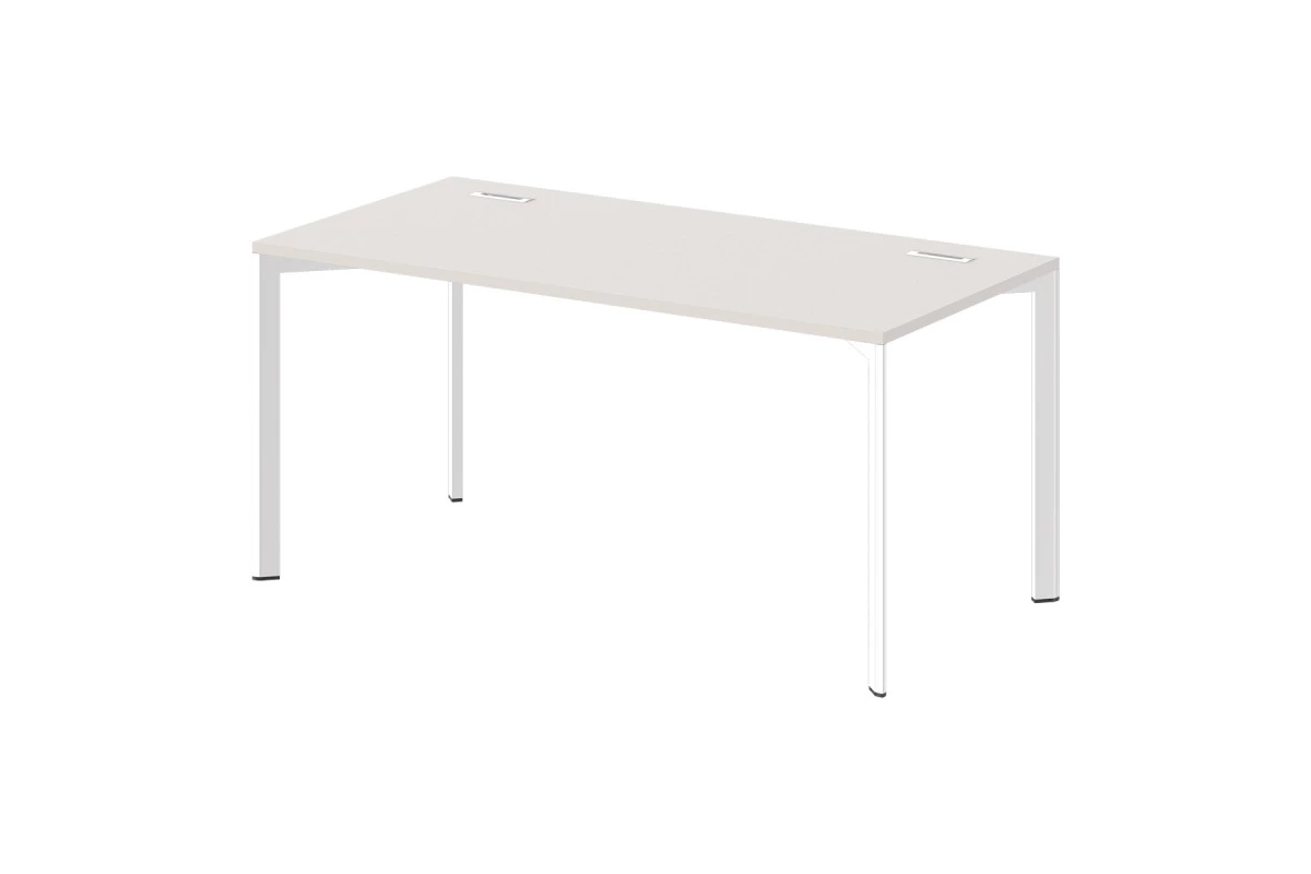 Cтол офисный на металлокаркасе с заглушками кабель-канала. Цвет металлокаркаса - хром,Артикул: G-32. Размеры: 1600x800x750. Стол состоит из столешницы и металлокаркаса. Столешница изготавливается из ЛДСП толщиной 25 мм. Торцы облицованы кромкой ABS толщиной 2 мм в цвет плиты. Металлокаркас представляют собой разборную, легкособираемую конструкцию, состоящую из опор и соединителей, стянутых между собой крепежными узлами. Опоры оборудованы регулировочными ножками, с возможностью регулировки по высоте. Цвет ножек – «черный».,Опоры и боковые и фронтальные соединители металлокаркаса изготовлены из стальной трубы, покрытие «Хром блестящий»: опоры – пятиугольное сечение, толщина стенок 2 мм, соединители боковые и фронтальные – прямоугольное сечение 50х20 мм, толщина стенок 1,5 мм. Радиус скруглений углов пятиугольной трубы 3 мм, трубы 50х20 мм – 1,5 мм.,Столешница имеет 2 металлические заглушки кабель-канала прямоугольной формы с прямоугольным отверстием под провода. Размер заглушки 160х50х25 мм, покрытие «Хром блестящий».
