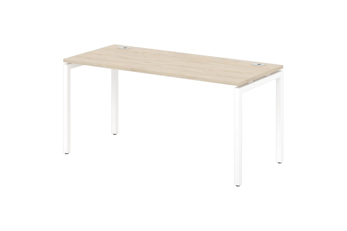Офисный стол одиночный на металлокаркасе с 2-мя заглушками кабель-канала. Сечение трубы 40х40 мм. Базовый цвет металлокаркаса - "белый" (возможно исполнение в цветах: "серый", "антрацит"). Возможность установки экранов.,Данная модель в эксклюзивном декоре металлокаркаса Манго в наличии в серии Sentida Color. В декорах: Апельсин, Голубика, Зеленый лайм, Земляника, Тирамису, Инжир и Малина, - под заказ от 10 элементов или 10 рабочих мест.,Артикул: S-37. Размер: 1600х700х750. ЛДСП: 25 мм. Металлокаркас: 40х40. Кромка: ABS 2 мм.,Стол на одно рабочее место на Металлокаркасе. Столешница изготовлена из ЛДСП 25 мм и оклеена противоударной кромкой ABS 2 мм. Металлокаркас представляют собой разборную, легкособираемую конструкцию, состоящую из опор и соединителей, стянутых между собой крепежными узлами. Опоры оборудованы регулировочными ножками, с возможностью регулировки по высоте. Металлокаркасы изготавливаются сечением 40х40 мм и окрашены порошковой краской в белый или серый цвет. В столешнице установлены два кабель-канала и лоток сетчатый для проводов. Все соединительные элементы оснащены фурнитурой для многократной сборки и разборки изделия.