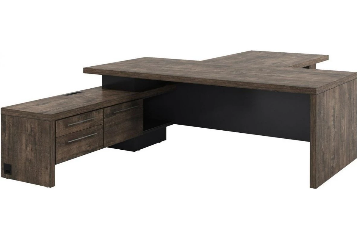 Стол руководителя правый с опорной тумбой,блоком розеток и брифингом Т-822.1000пр Торстон