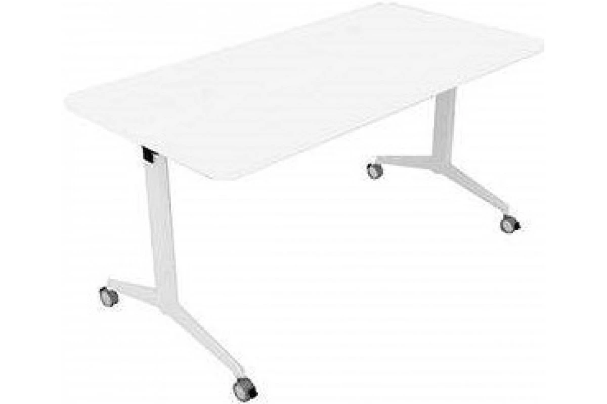 Стол складной на колесах со стопорами. Белый металлический каркас. Толщина столешницы 25мм.