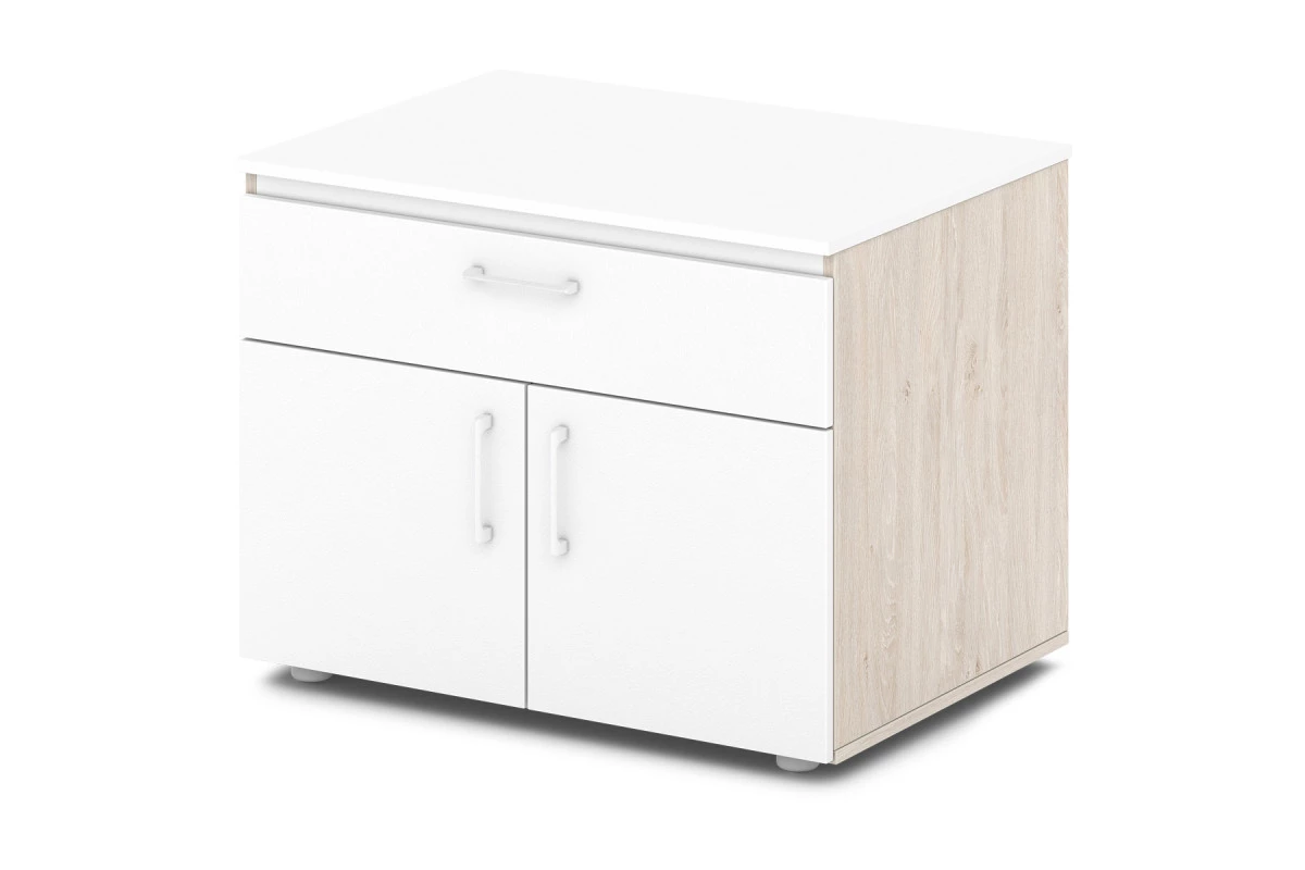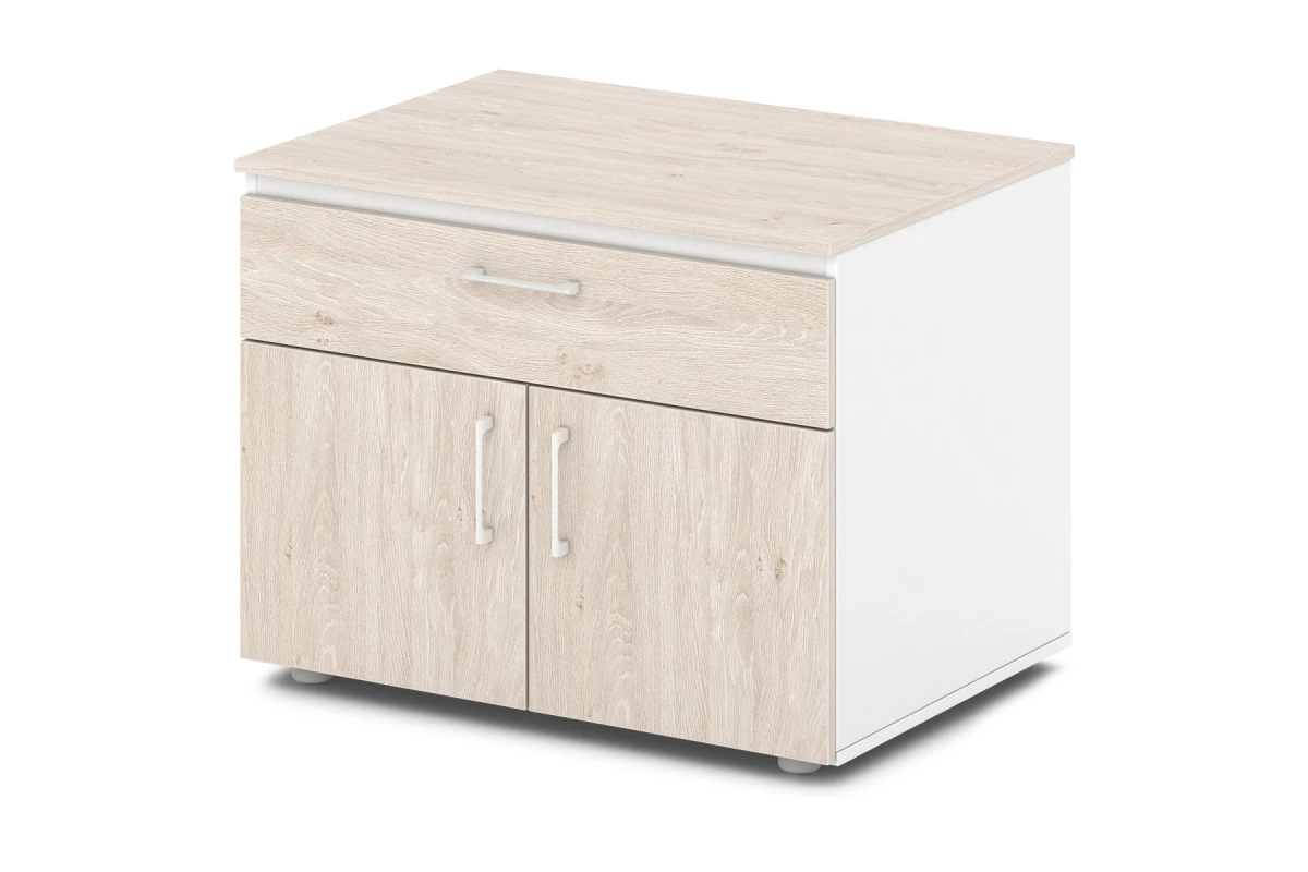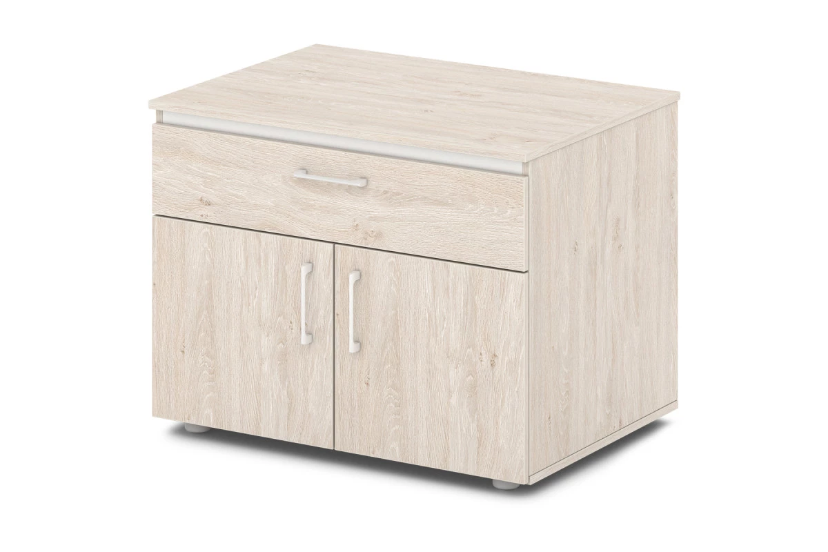 Офисная тумба под аппаратуру. Ящик оборудован шариковыми направляющими скрытого монтажа с механизмом самозадвижения.,Тумба под аппаратуру Артикул: S-280. Размер: 820х588х626. ЛДСП: 16 мм, 10 мм. Кромка: ABS 2 мм и 0,4 мм.,Тумба под оргтехнику имеет один ящик на шариковых направляющих скрытого монтажа с системой самозадвижения и одну полку, закрытую распашными дверями. Верх, низ, бока тумбы, а также фасады, бока и задняя стенка ящика изготовлены из ЛДСП 16 мм. Задняя стенка тумбы и дно ящика изготовлены из ЛДСП 10 мм. Фасады оклеены противоударной кромкой ABS 2 мм. Верх шкафа комбинированный 48 мм, с декоративным элементом цвета «Металлик», оклеен противоударной кромкой ABS 2 мм. Остальные детали оклеены кромкой ABS 0,4 мм. Верх дополнен декоративным элементом цвета «Металлик». Опоры тумбы снабжены компенсатором неровности пола. Все соединительные элементы оснащены фурнитурой для многократной сборки и разборки изделия. Используется фурнитура ведущих европейских производителей.,Данная модель в эксклюзивном декоре Манго в наличии в серии Sentida Color. В декорах: Апельсин, Голубика, Зеленый лайм, Земляника, Тирамису, Инжир и Малина, - под заказ от 10 элементов или 10 рабочих мест.
