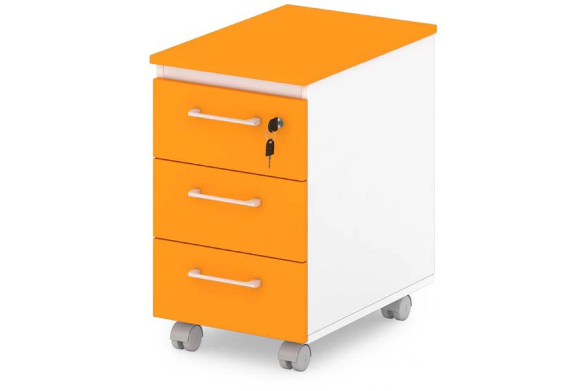 Офисная тумба подкатная малая с замком на первый ящик. Оборудована шариковыми направляющими скрытого монтажа с механизмом самозадвижения. Размер ящика позволяет разместить один ряд документов формата А4.,Тумба мобильная. Артикул: S-93. Размер: 340х500х550. ЛДСП: 16 мм, 10 мм. Кромка: ABS 2 мм и 0,4 мм. Тумба подкатная мобильная имеет три ящика на шариковых направляющих скрытого монтажа с системой самозадвижения. Верхний ящик оснащен замком. Верх, низ, бока тумбы, а также фасады, бока и задние стенки ящиков изготовлены из ЛДСП 16 мм. Задняя стенка тумбы и дно ящиков изготовлены из ЛДСП 10 мм. Комбинированный топ и фасады тумбы могут быть выполнены из ЛДСП как в цвет каркаса тумбы, так и в других цветах серий Sentida и Sentida color. Фасады оклеены противоударной кромкой ABS 2 мм. Верх тумбы комбинированный 48 мм, с декоративным элементом цвета «Металлик», оклеен противоударной кромкой ABS 2 и кромкой ABS 0,4 мм. Остальные детали оклеены кромкой ABS 0,4 мм. Все соединительные элементы оснащены фурнитурой для многократной сборки и разборки изделия. Используется фурнитура ведущих европейских производителей.,Декоры Манго и Белый в наличии. Декоры Апельсин, Голубика, Зеленый лайм, Земляника, Тирамису, Инжир и Малина доступны при заказе от 10 элементов или 10 рабочих мест. Данная модель в классических декорах Дуб Верцаска светлый и Дуб Честерфилд в серии Sentida в наличии.