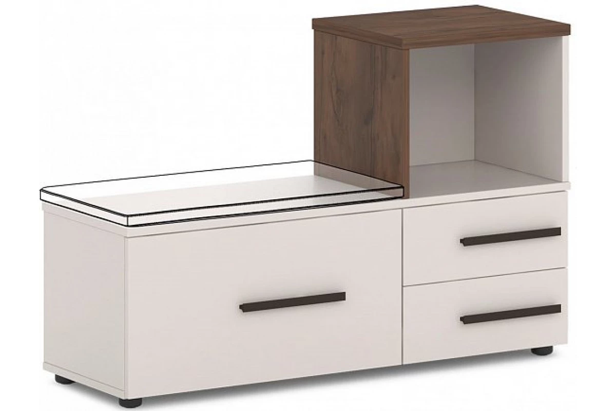Офисная тумба приставная с индивидуальным пуфом для сидения (пуф в комплект не входит). Можно выбрать светлый или темный пуф. Декоры: верх и бок надставки - Таксония; остальные детали - Бежевый песок. Ящики могут быть установлены с правой или левой стороны. На фото - левая тумба.,Артикул: Т-235л/пр. Размер: 1146х386х750. ЛДСП: 25 мм и 18 мм. Кромка: ABS 2 мм и 0,4 мм.,Тумба приставная имеет два маленьких и один большой ящик на шариковых направляющих с механизмом плавного закрывания. Топ изготовлен из ЛДСП 25 мм и оклеен противоударной кромкой ABS 2 мм. Верх изготовлен из ЛДСП 18 мм и оклеен противоударной кромкой ABS 2 мм. Низ, бока тумбы, бока и задние стенки ящиков изготовлены из ЛДСП 18 мм и оклеены противоударной кромкой ABS 0,4 мм. Дно ящиков ХДФ «Серое». Задняя стенка тумбы изготовлена из ЛДСП 18 мм. Фасады изготовлены из ЛДСП 18 мм и оклеены противоударной кромкой ABS 2 мм. Опоры тумбы снабжены компенсатором неровности пола. Все соединительные элементы оснащены фурнитурой для многократной сборки и разборки изделия. Используется фурнитура ведущих европейских производителей. В тумбе предусмотрено место для пуфа, который приобретается дополнительно.