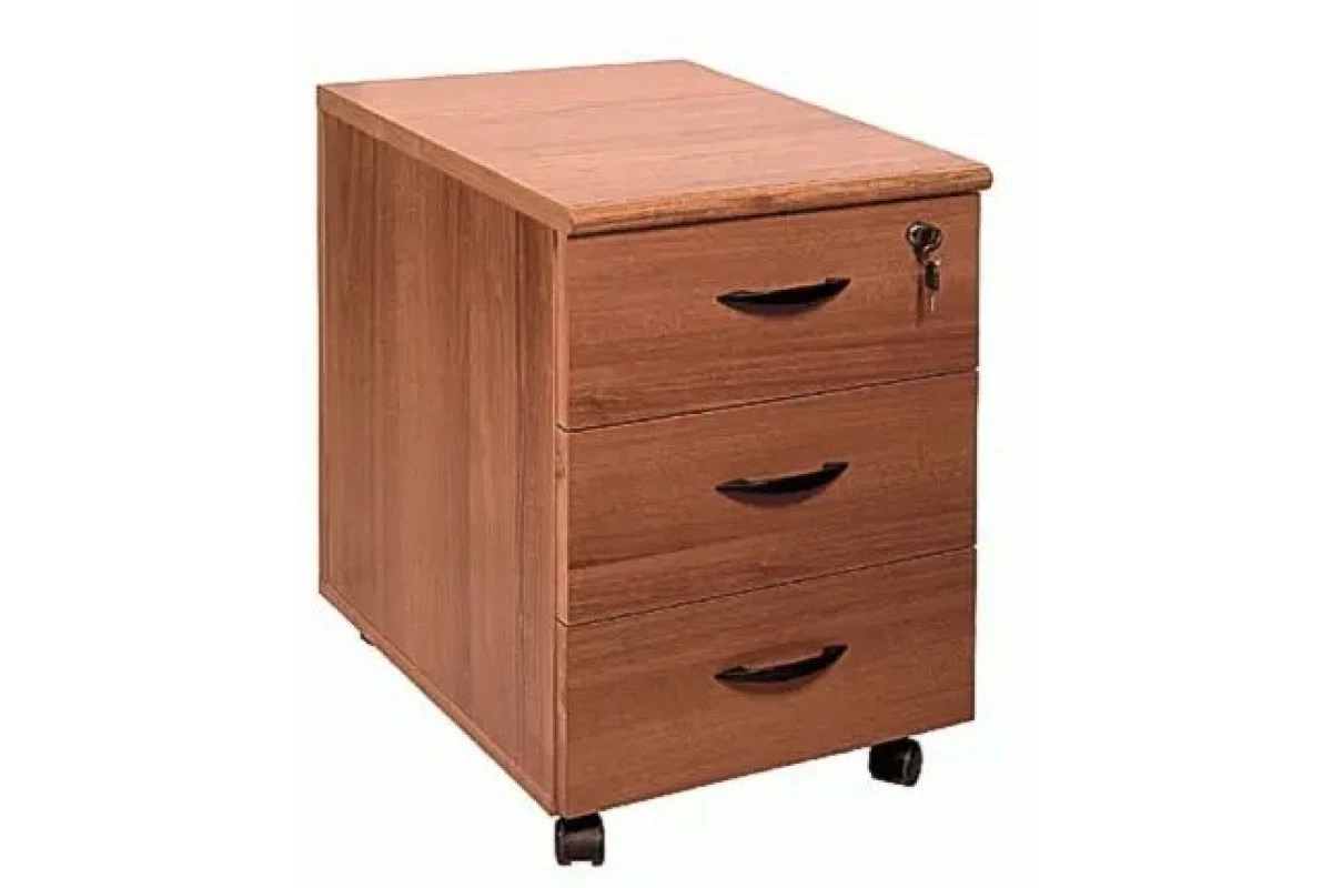 Ламинированная ДСтП, кромка ПВХ Топ тумбы - 25 мм Каркас и фасады ящиков - 18 мм, кромка ПВХ 0,4 мм. Профиль МДФ 30 мм Ручки - пластиковые, цвет - черный Особенности: Тумба имеет 3 выдвижных ящика с доводчиками, установленных на роликовые направляющие Тумба укомплектована «центральным» замком, блокирующим все ящики тумбы одновременно Фасад топа тумбы облицован профилем МДФ Тумба устанавливается на колесные опоры Тумба поставляется в собранном виде