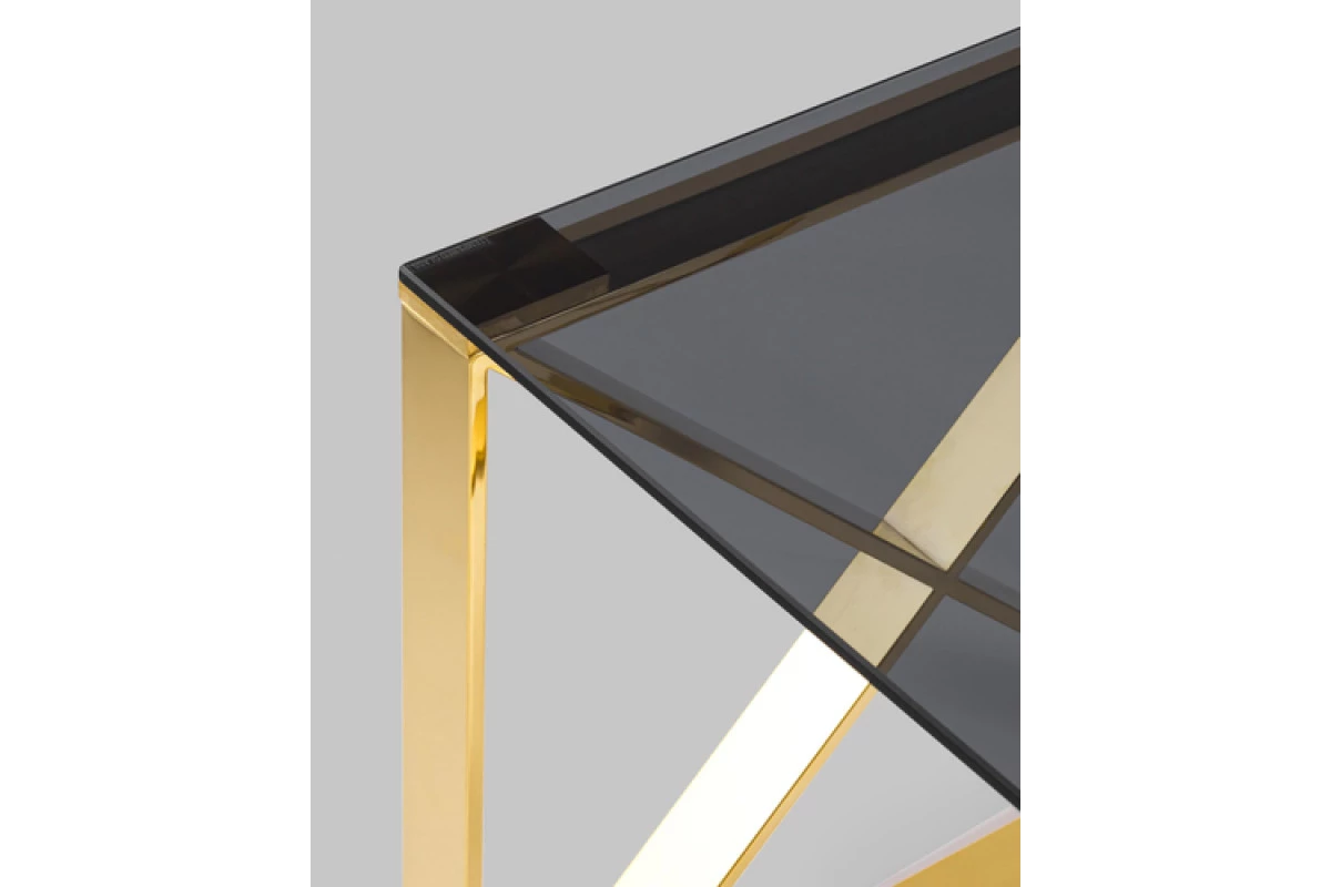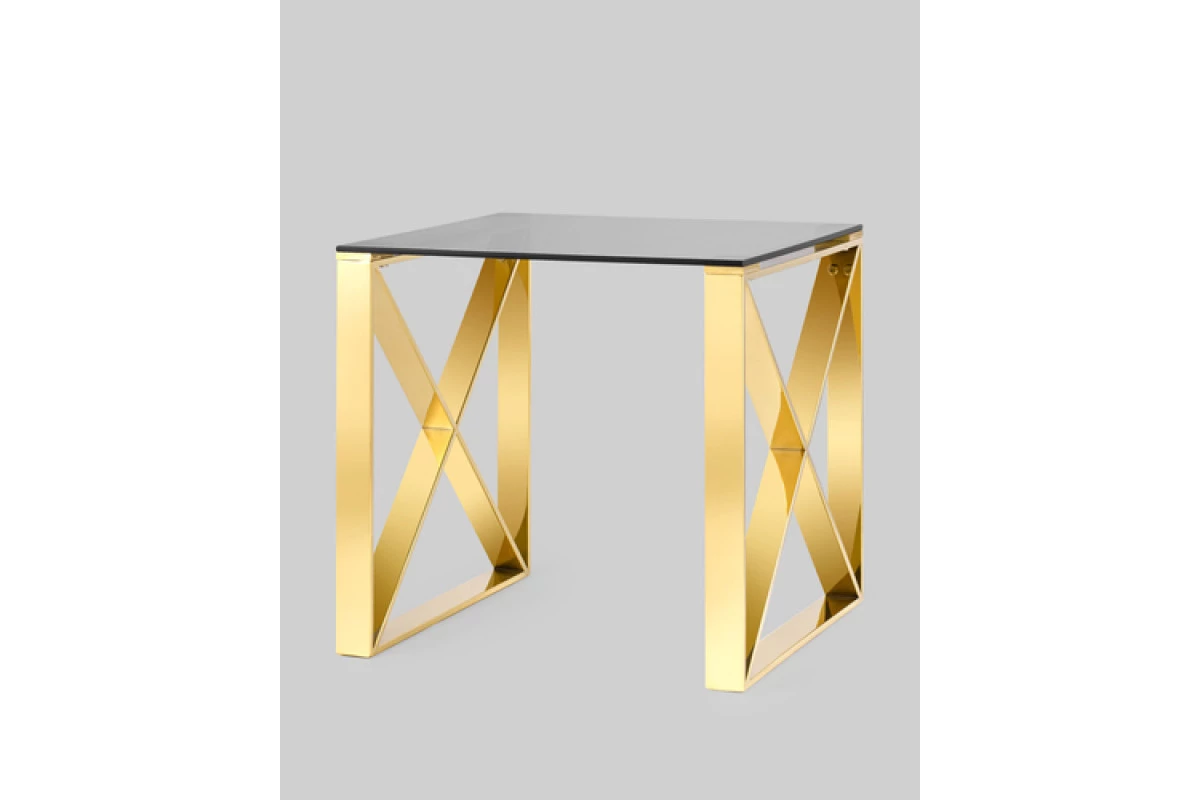 Журнальный стол 55*55 КРОСС золото стекло smoke в Про-офис